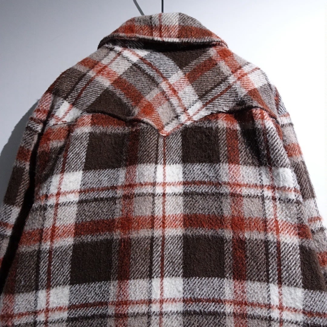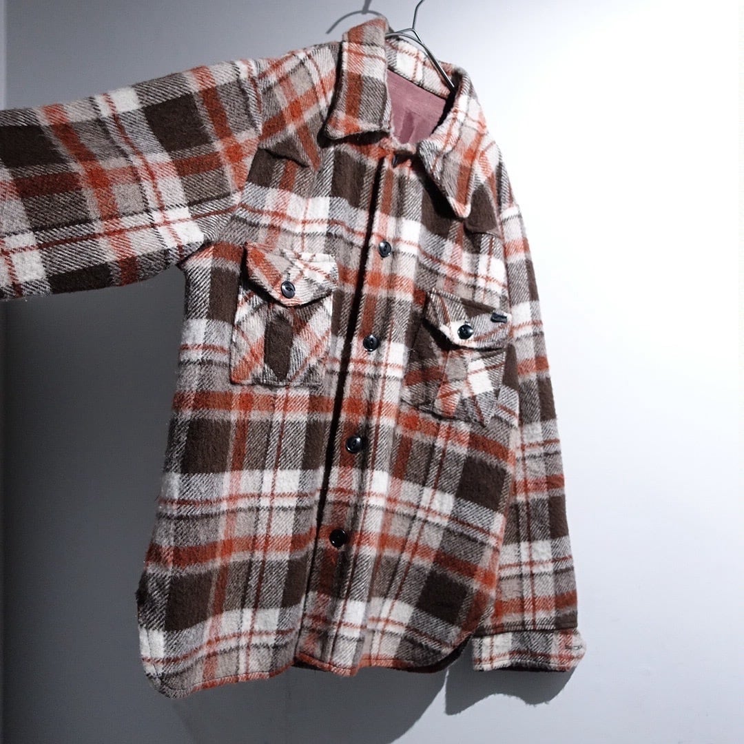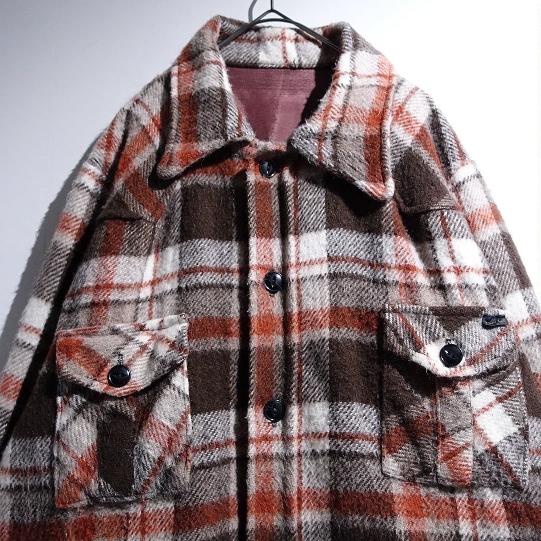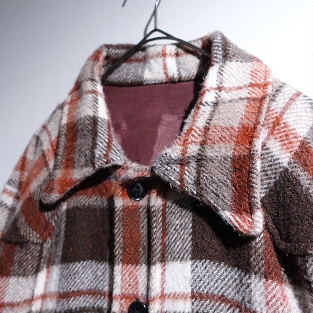 70s Multicolor Check Acrylic Wool CPO Shirt Jacket
