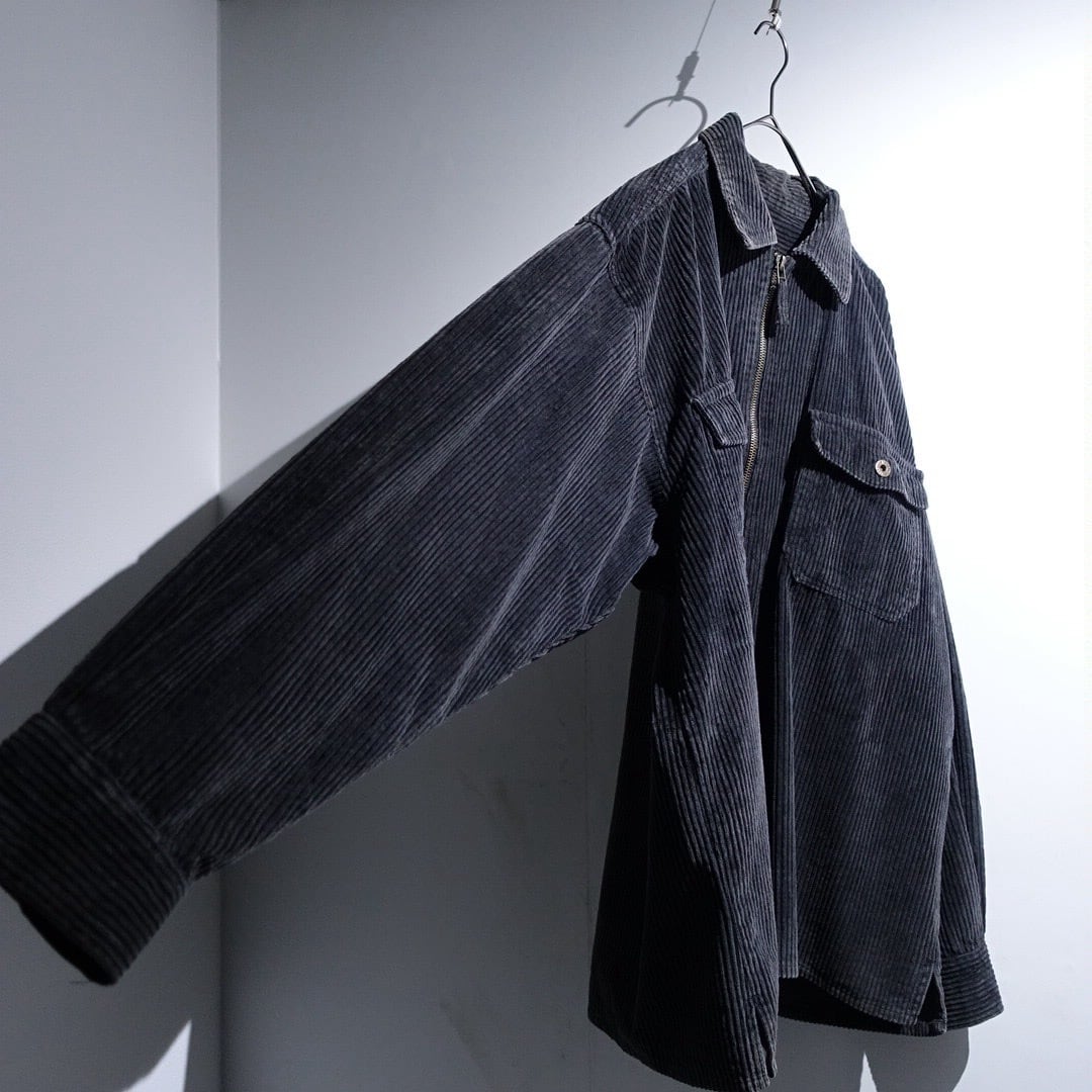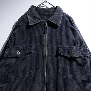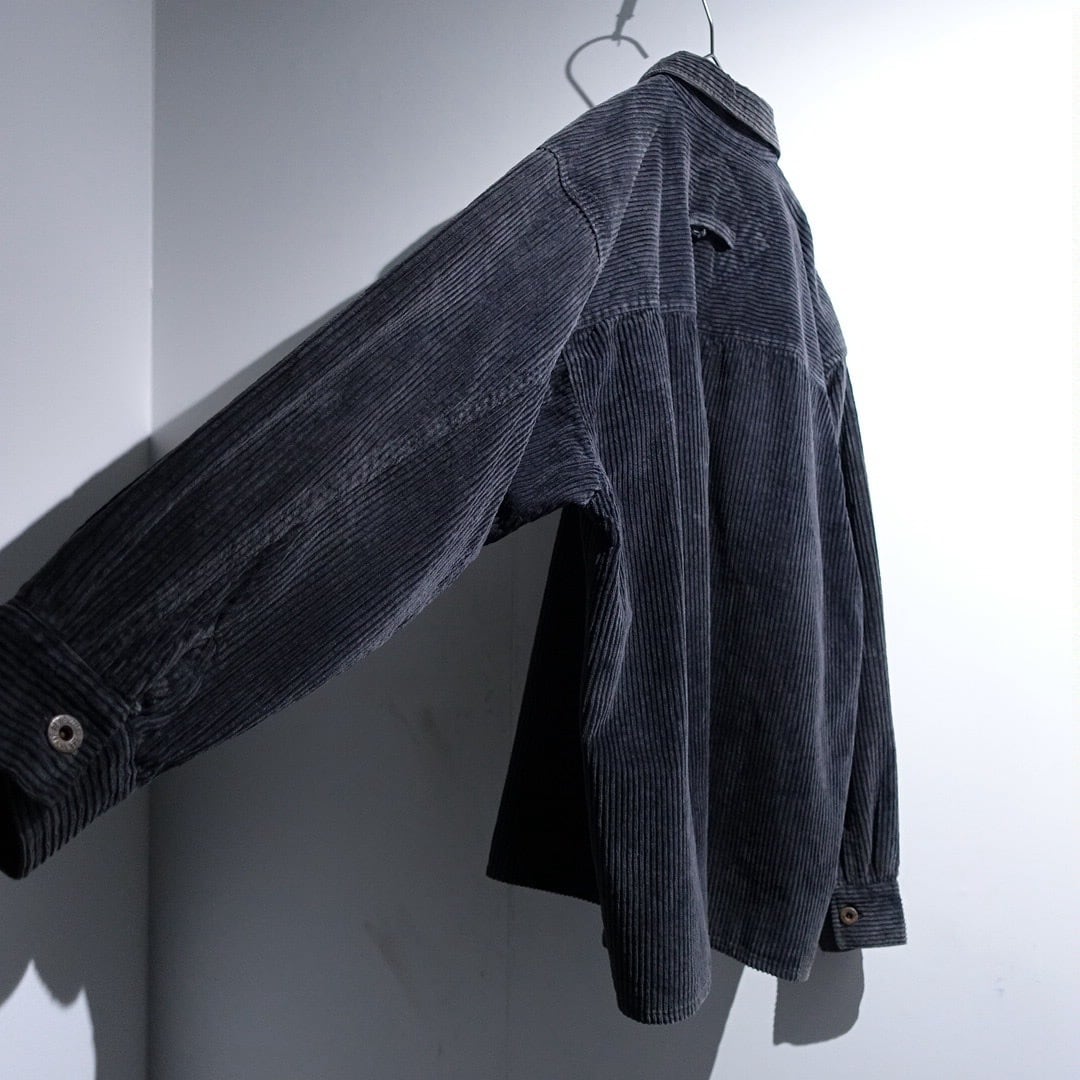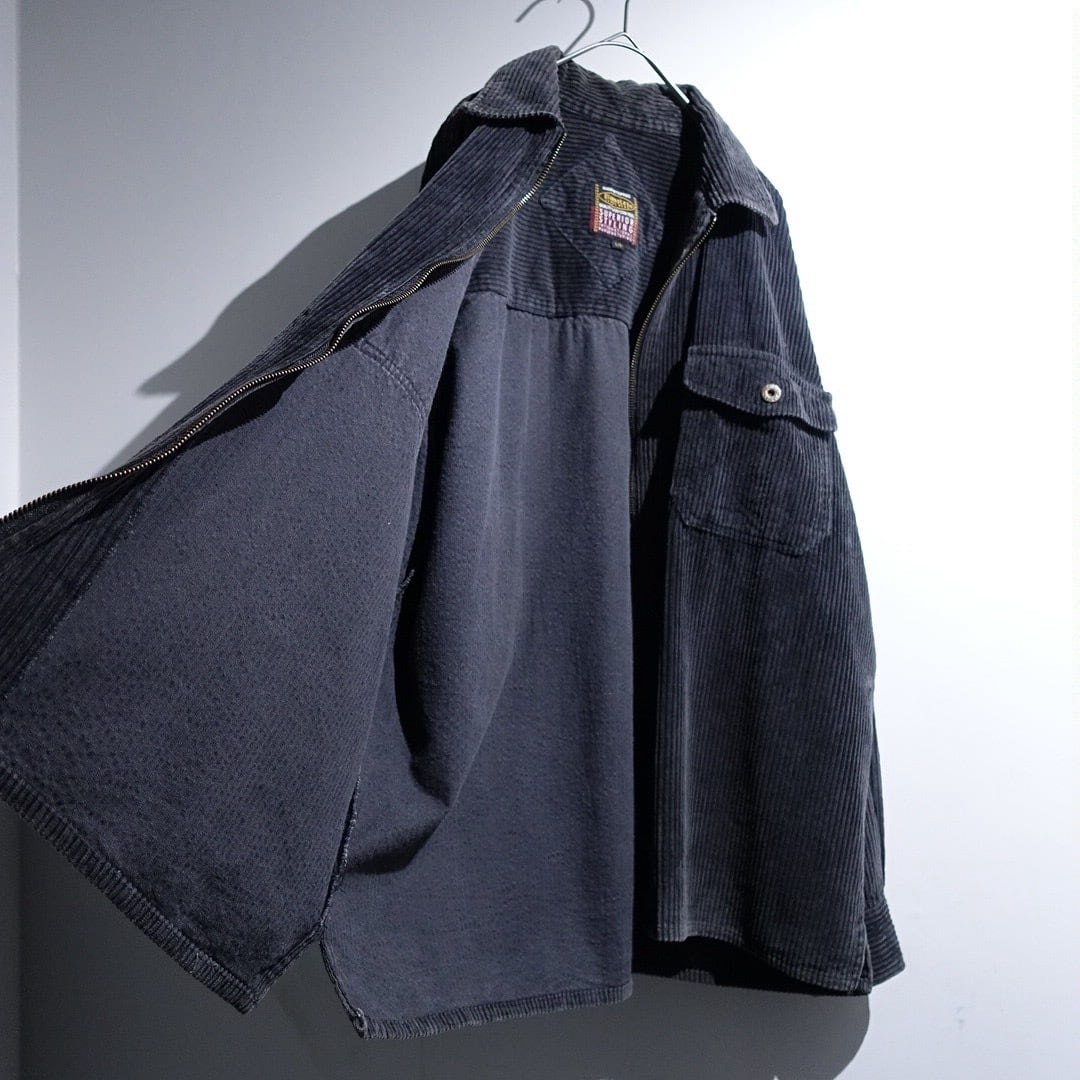 90s Faded Black Corduroy Zip Shirt Jacket