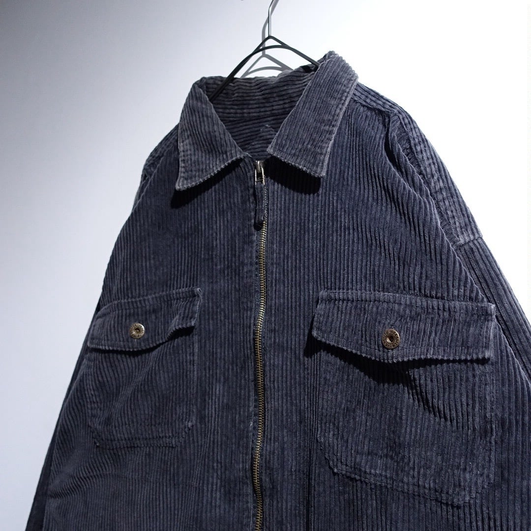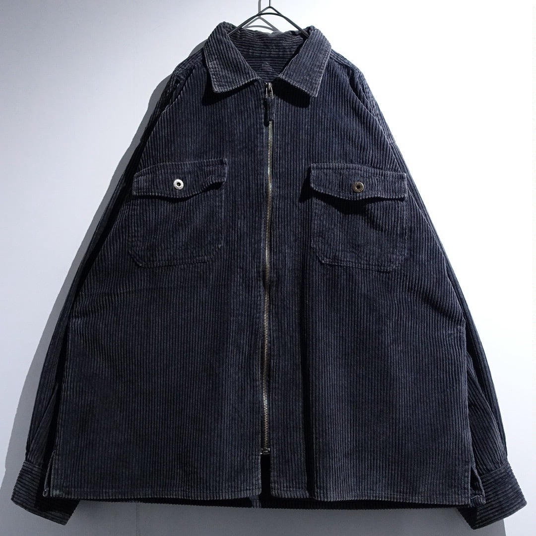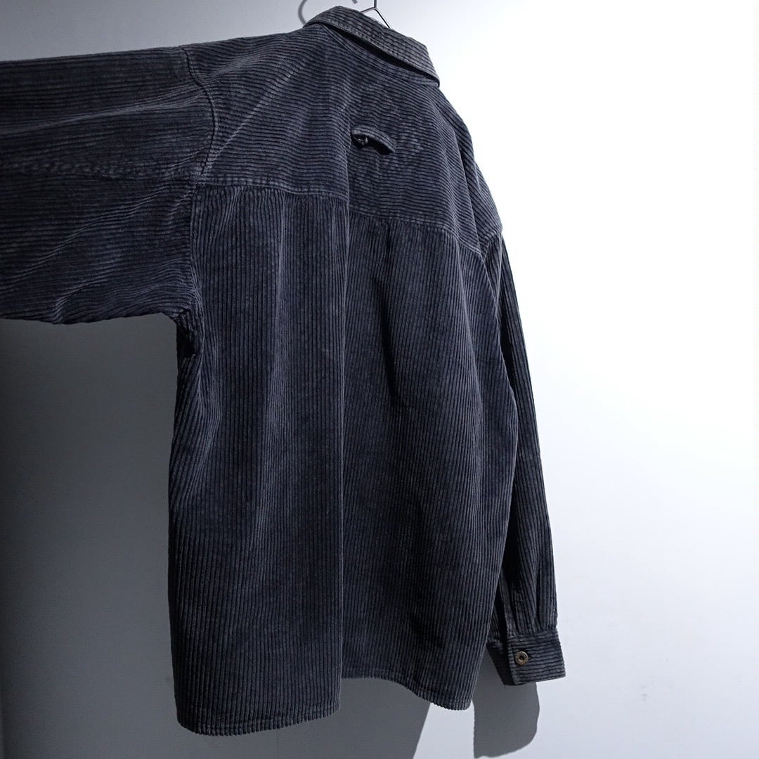 90s Faded Black Corduroy Zip Shirt Jacket