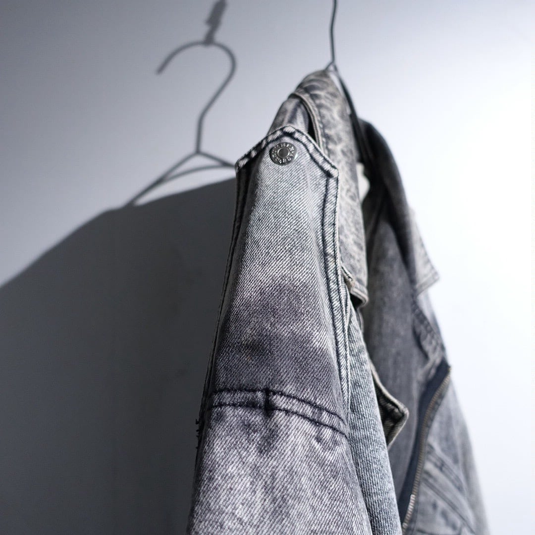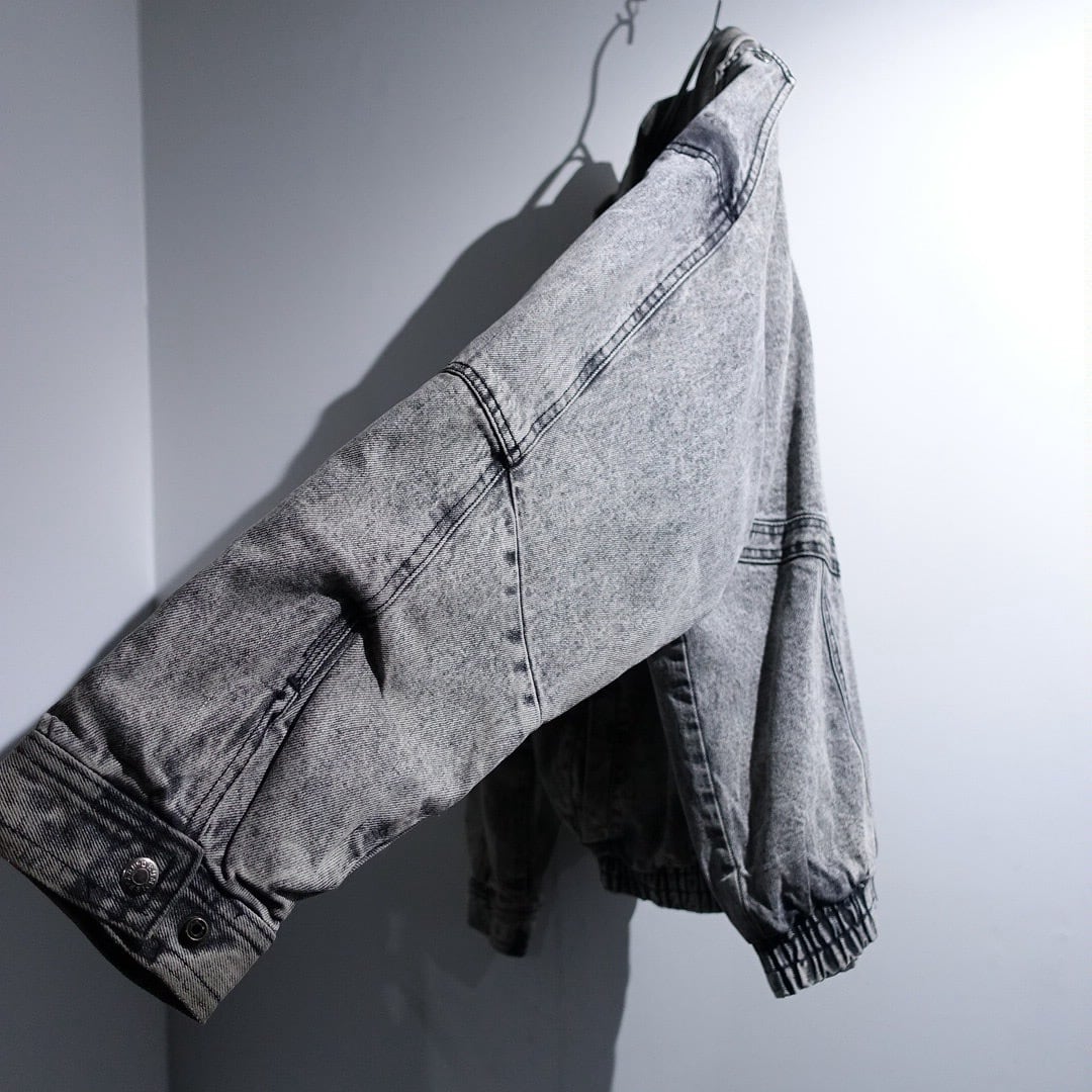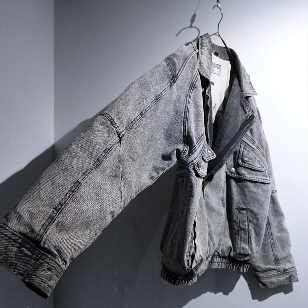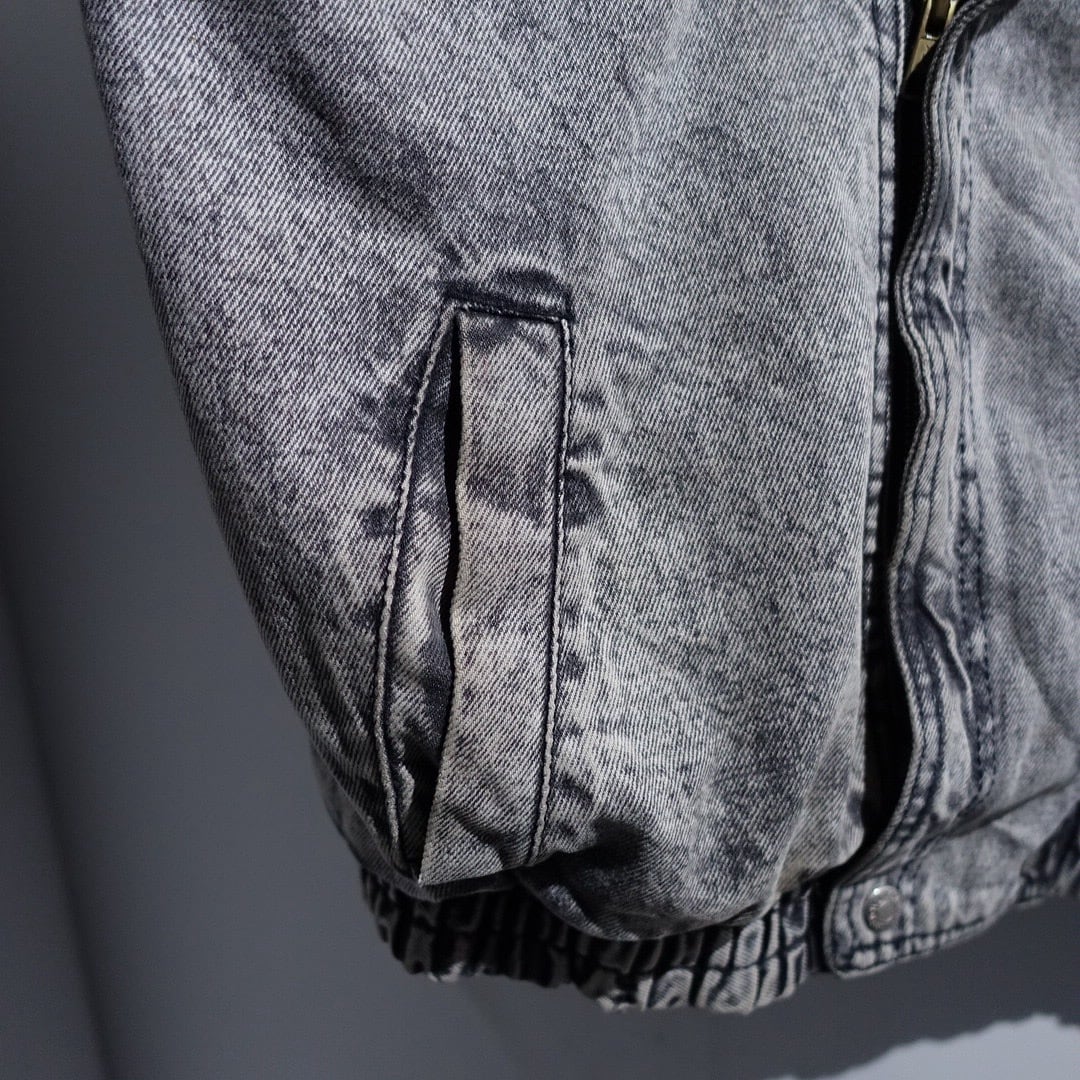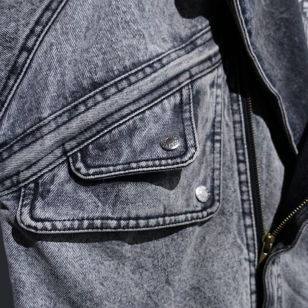 90s Black Chemical Wash Denim Asymmetrical Blouson