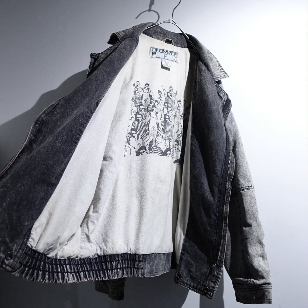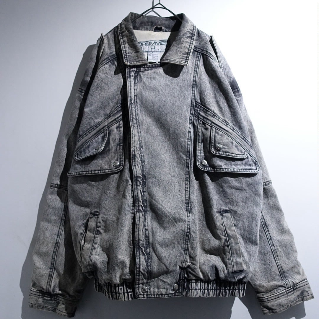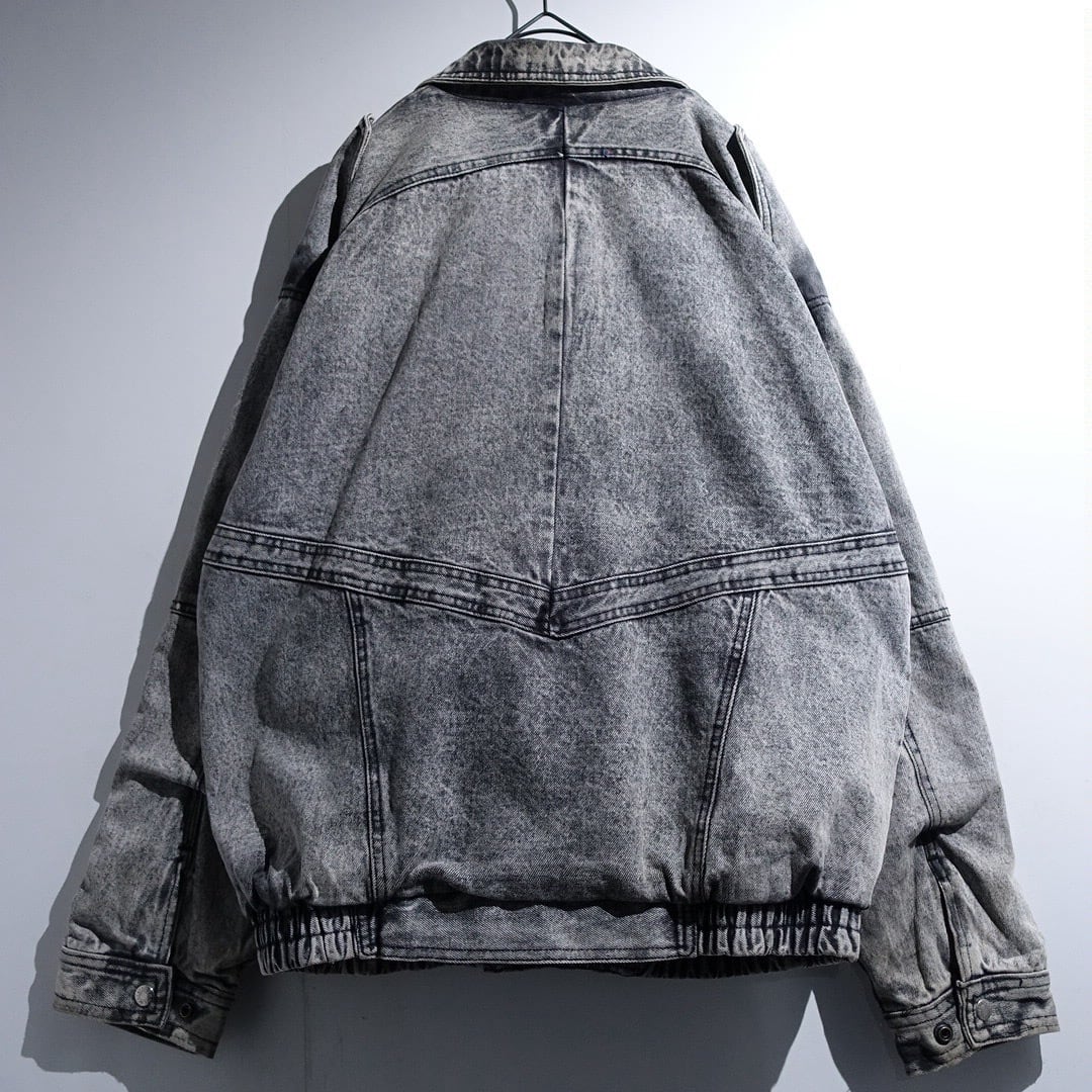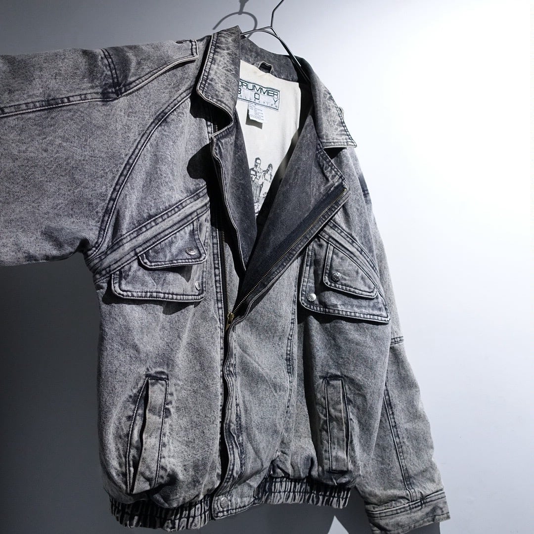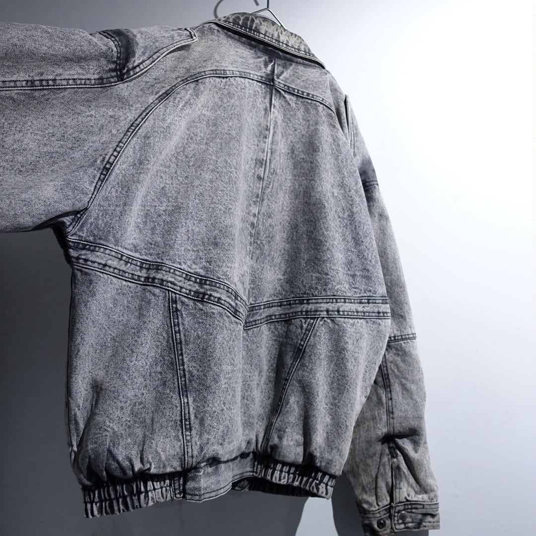 90s Black Chemical Wash Denim Asymmetrical Blouson