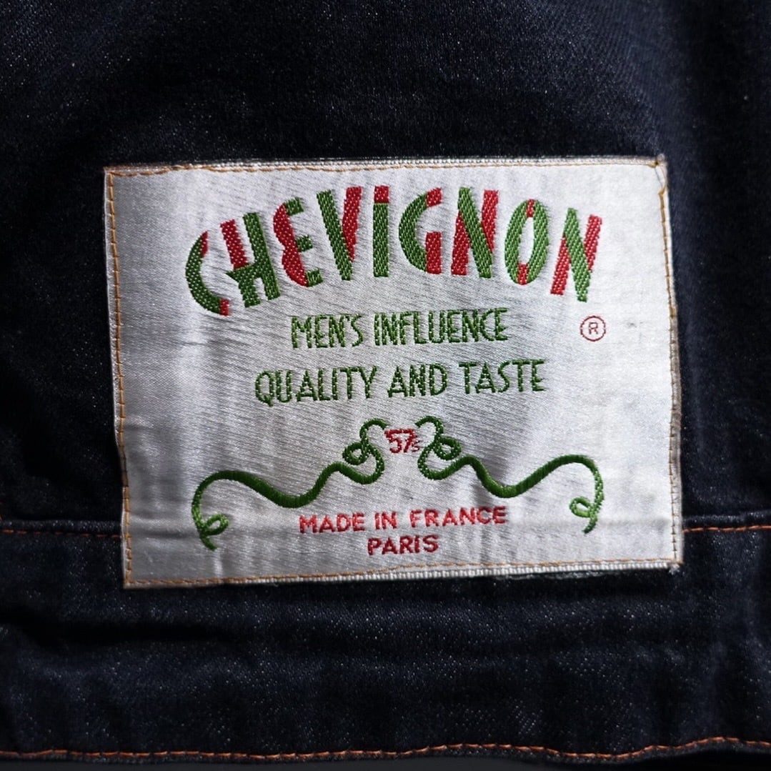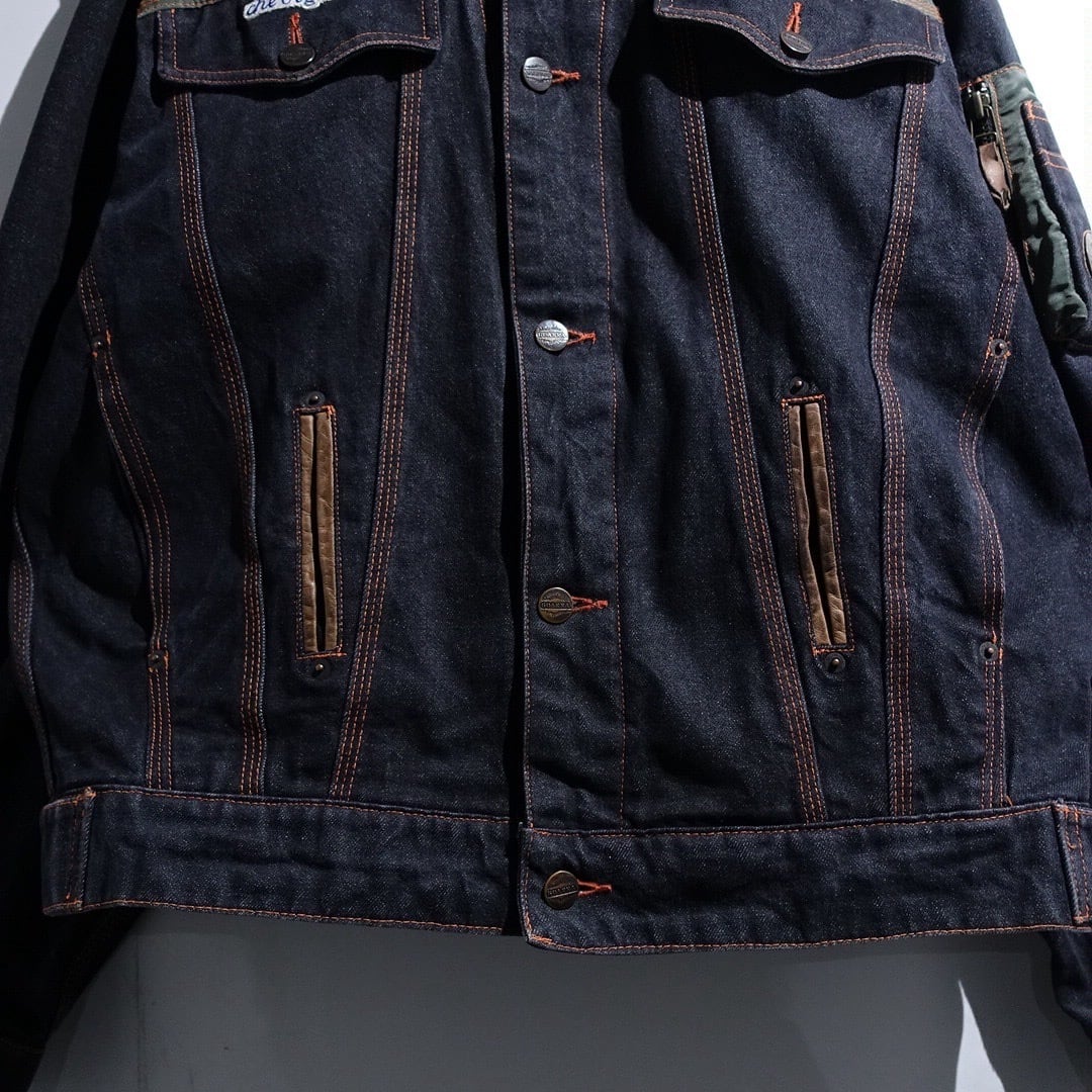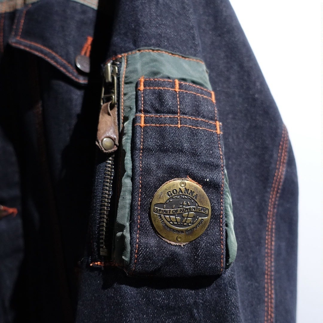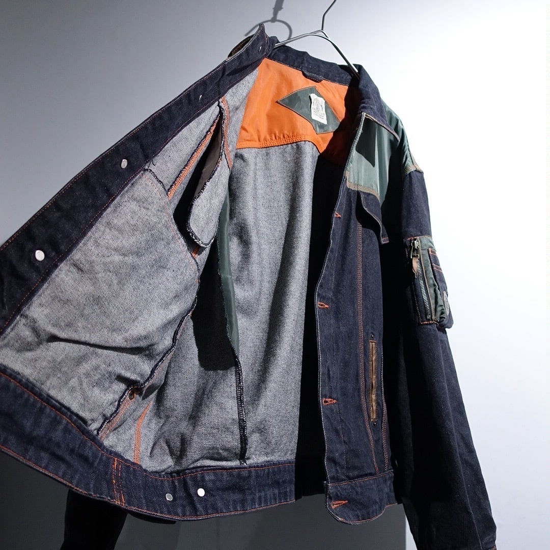 90s EURO "CHEVIGNON" Black Denim & Nylon Switching Design Jacket