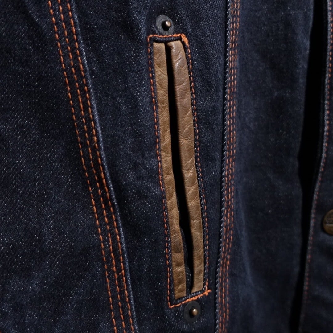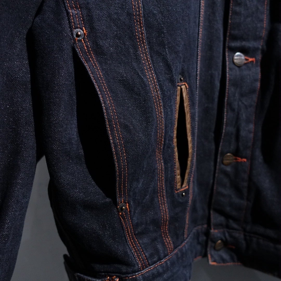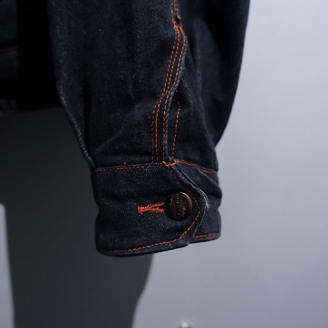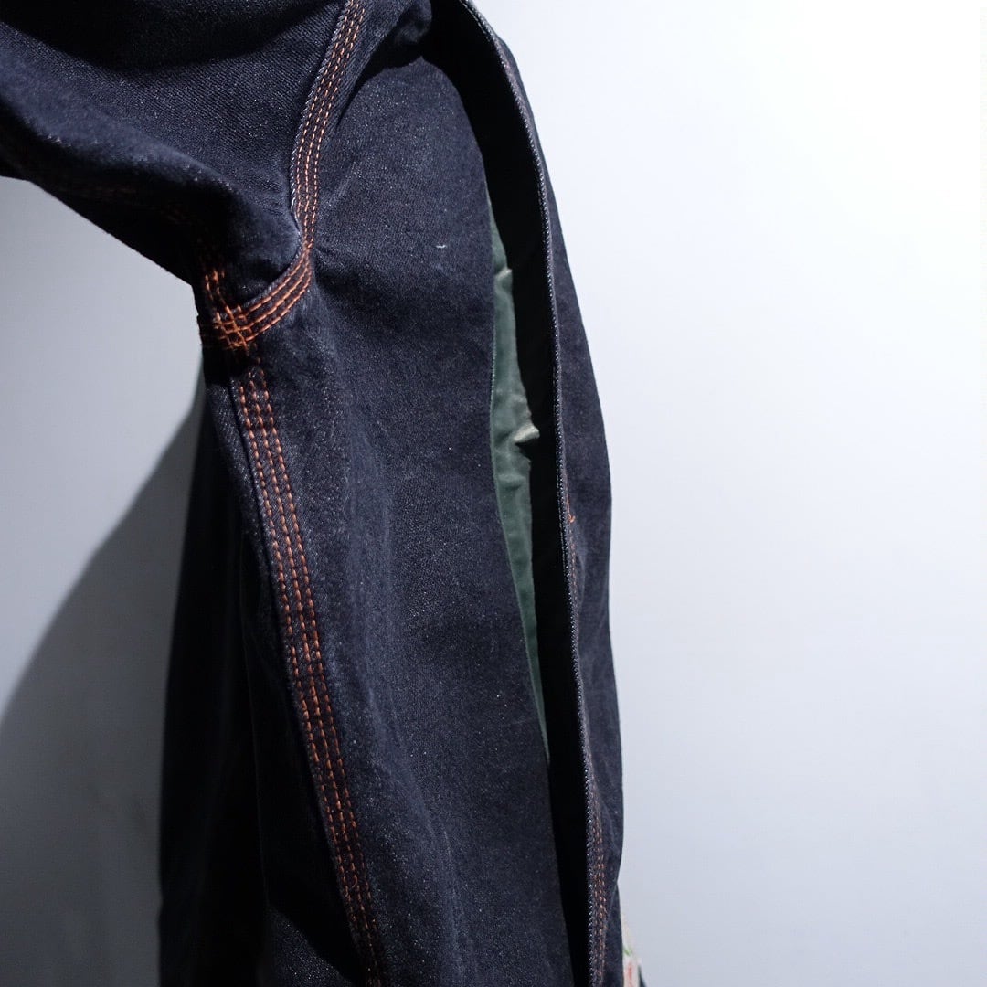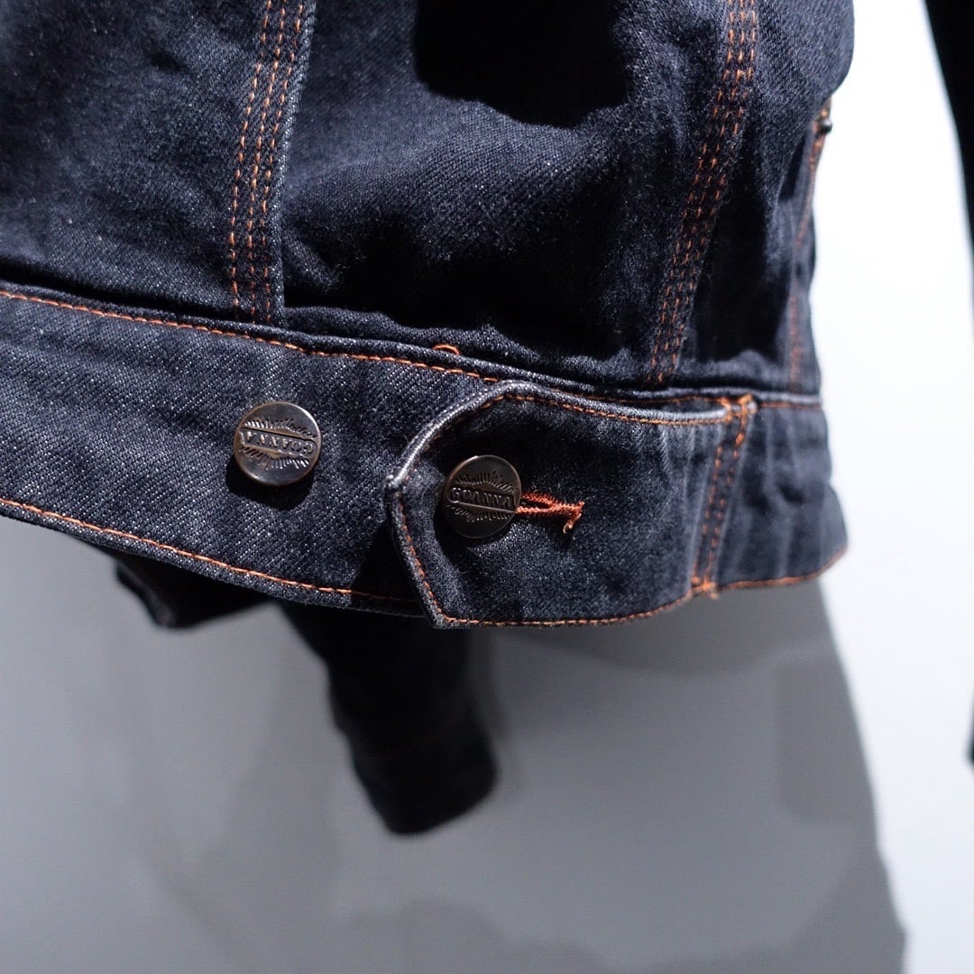 90s EURO "CHEVIGNON" Black Denim & Nylon Switching Design Jacket