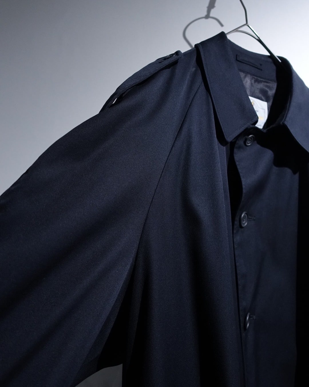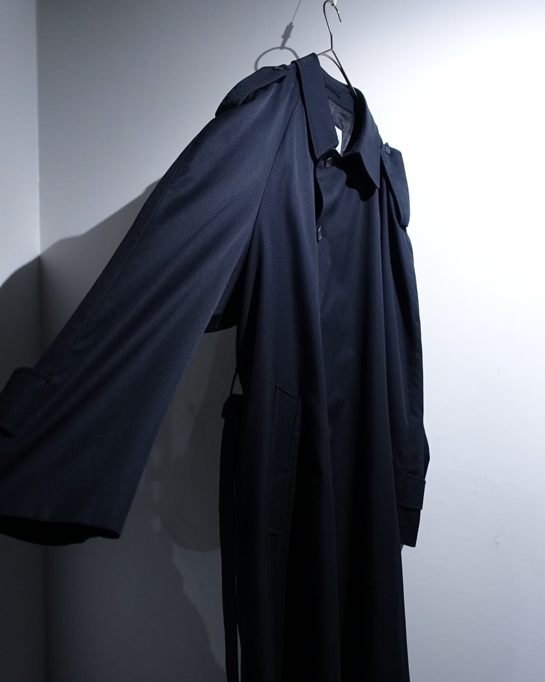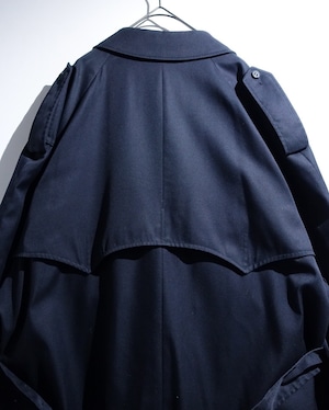80s "Aquascutum" Dark Navy Gabardine Single Trench Coat