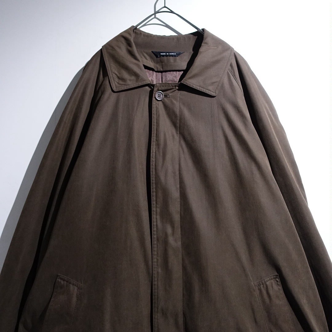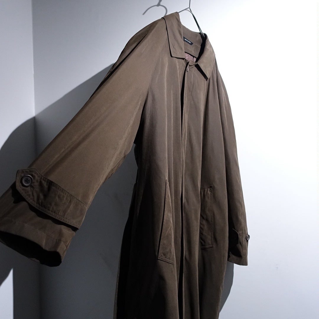 90s Brown Smooth Nylon Long Balmacaan Coat with Liner