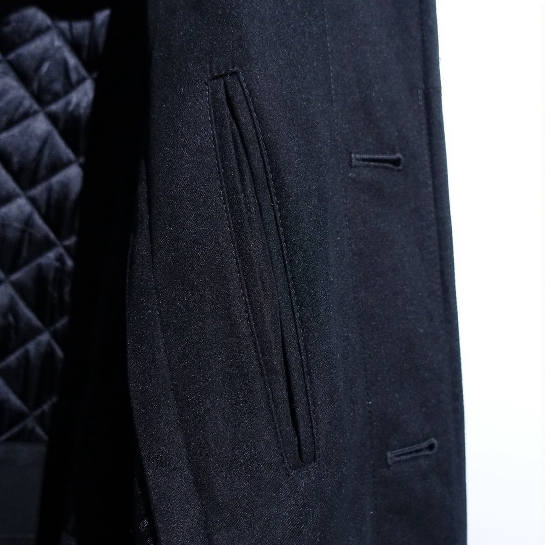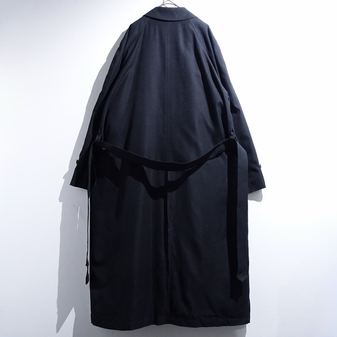 90s "Ralph Lauren" Black Smooth Nylon Long Balmacaan Coat with Liner