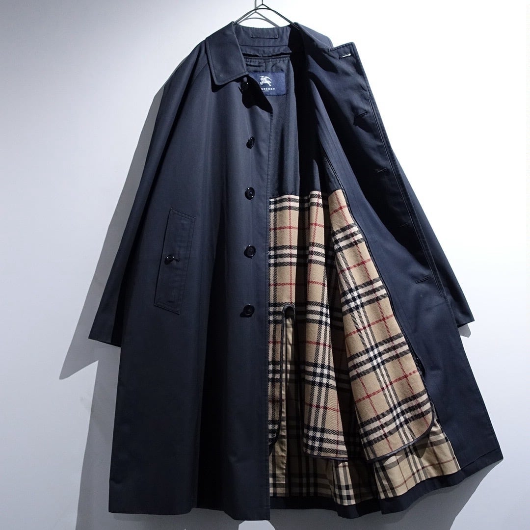 "Burberry" Black Nova Check Long Balmacaan Coat with Liner