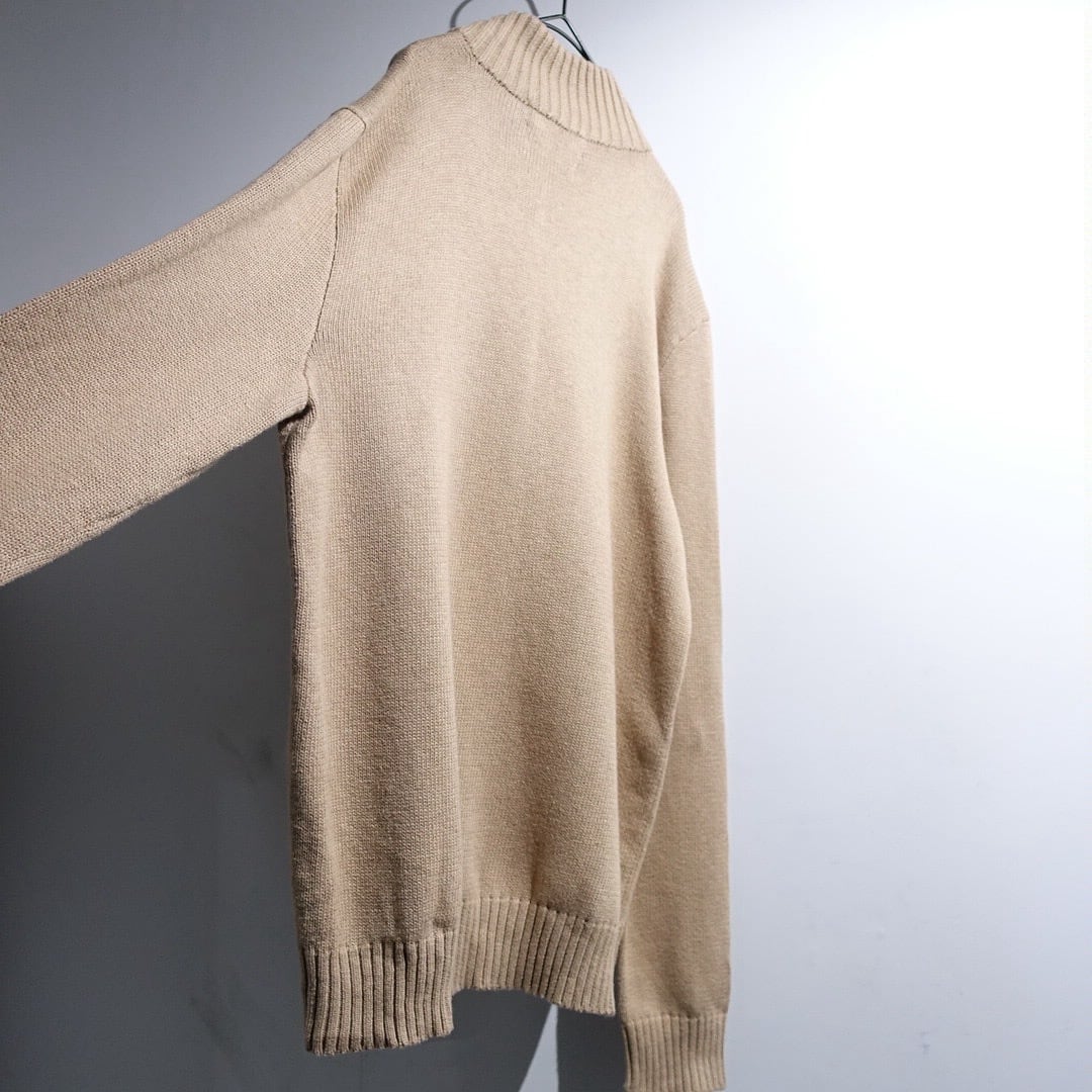90s "Ralph Lauren" Beige Logo Desgin Cotton Half-Zip Knit