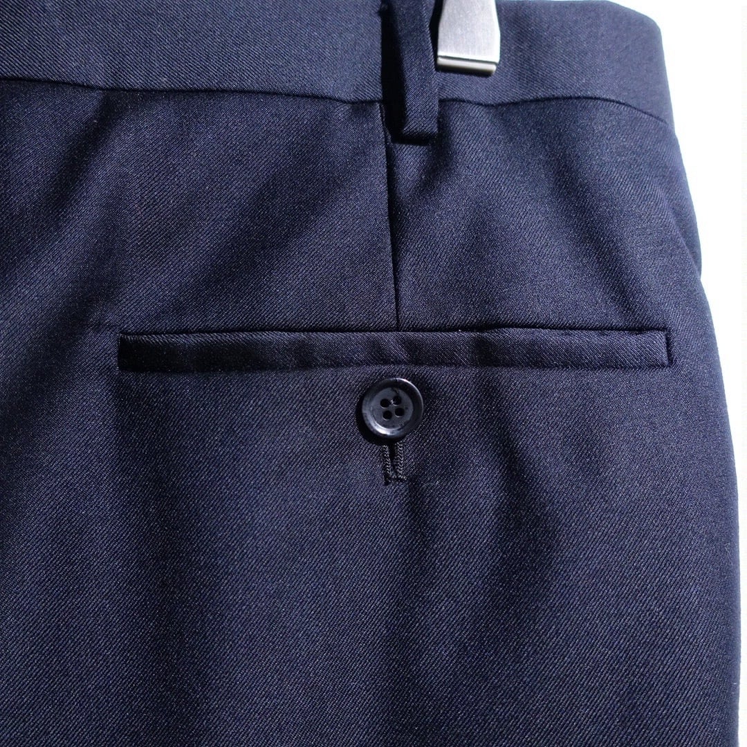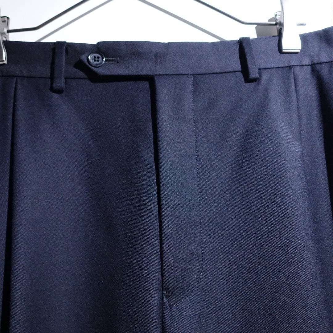 90s Navy Gabardine 2-Tuck Wide Straight Double Slacks