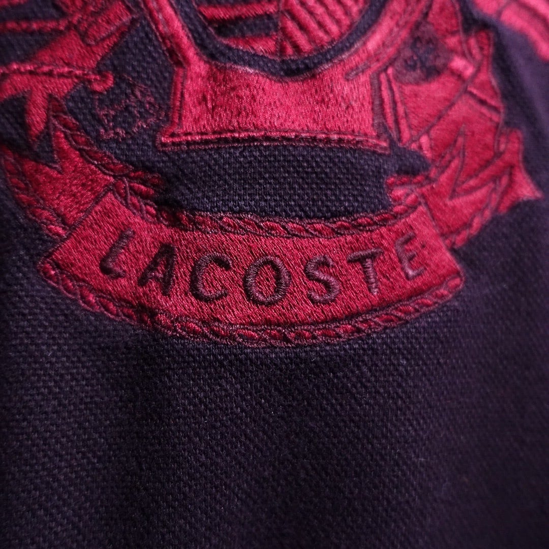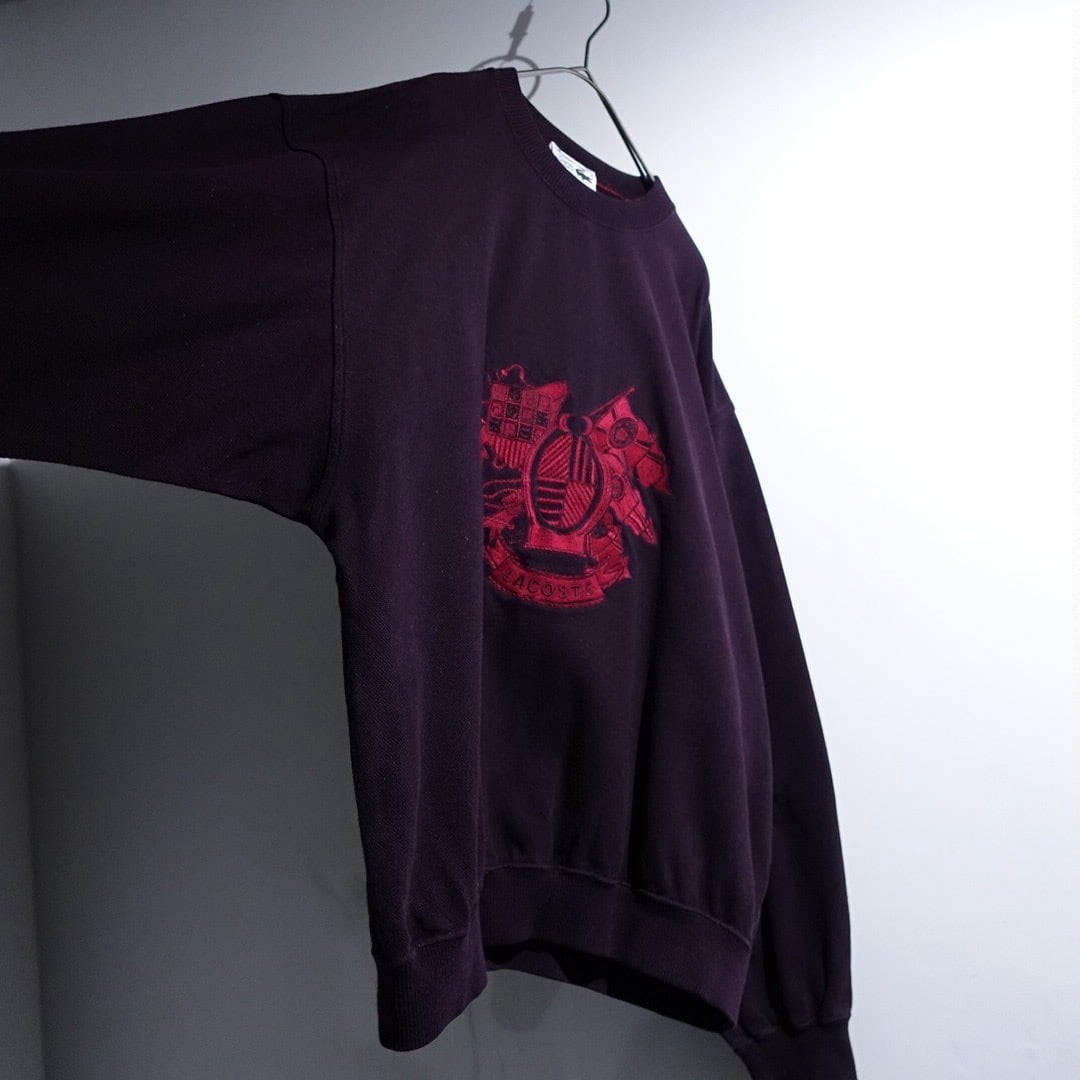 90s "LACOSTE" Wine Red Emblem Embroidery Design Sweat
