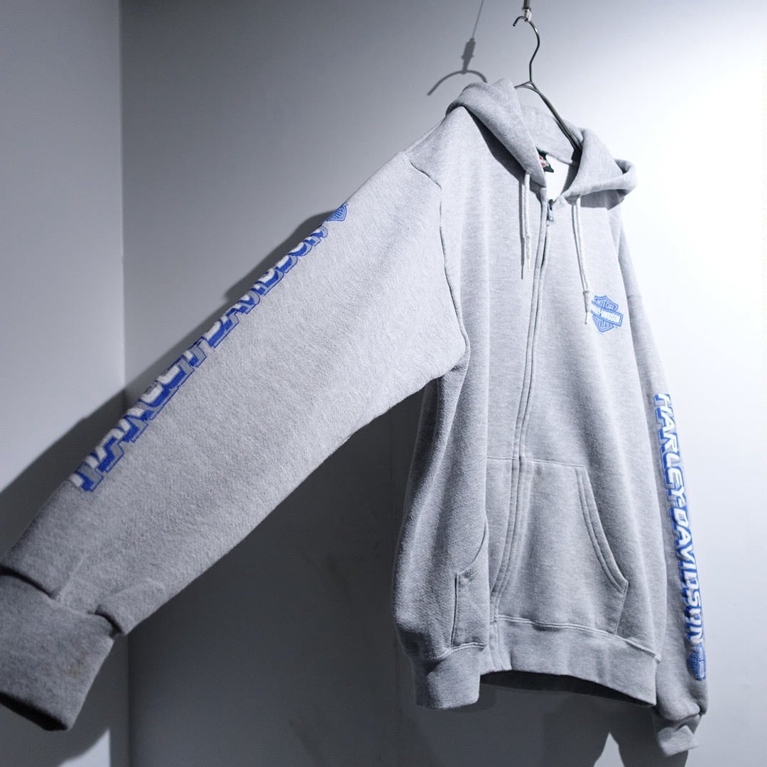 OOs "Harley-Davidson" Gray Logo Design Sweat Zip Hoodie