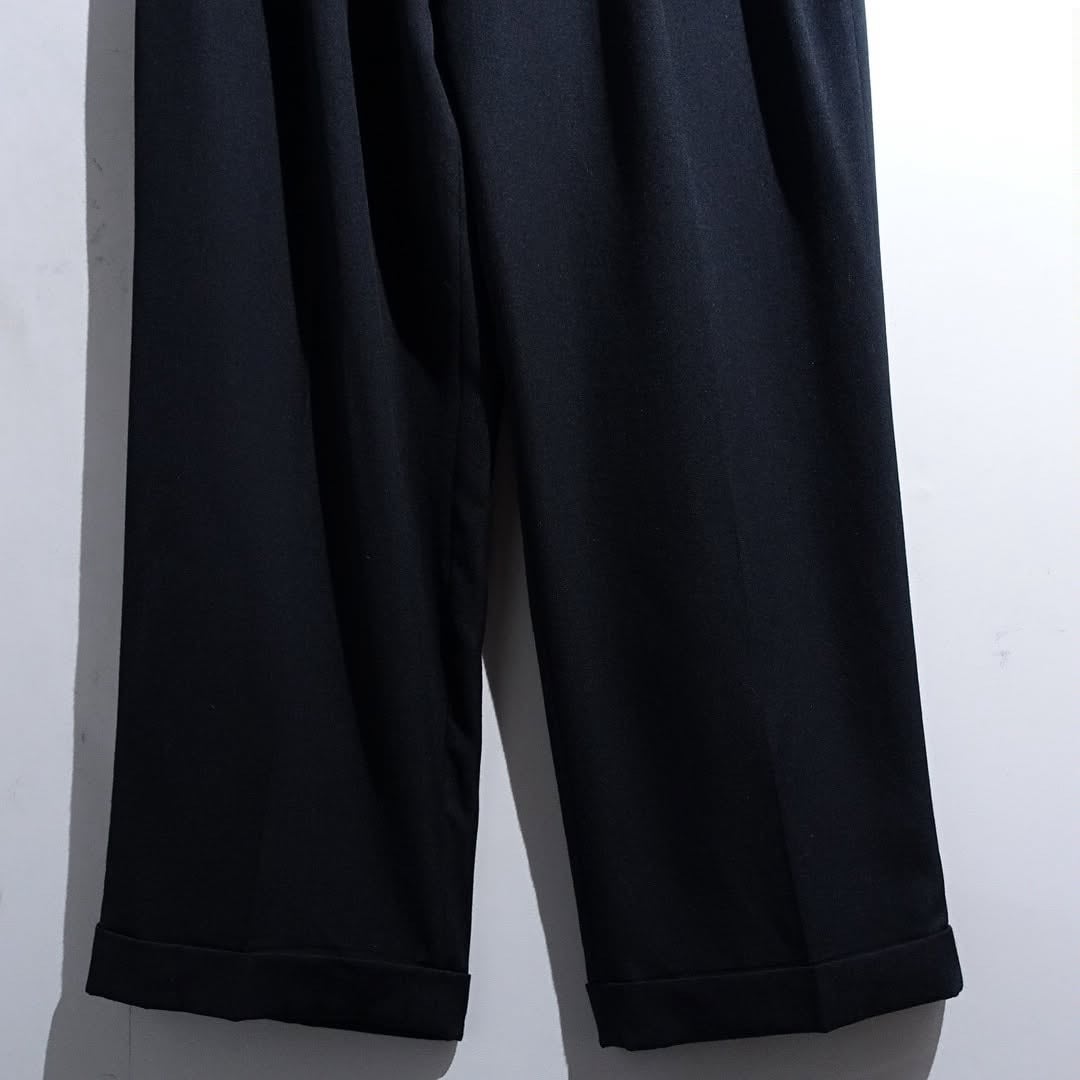 Black 3-Tuck Wide Straight Double Slacks