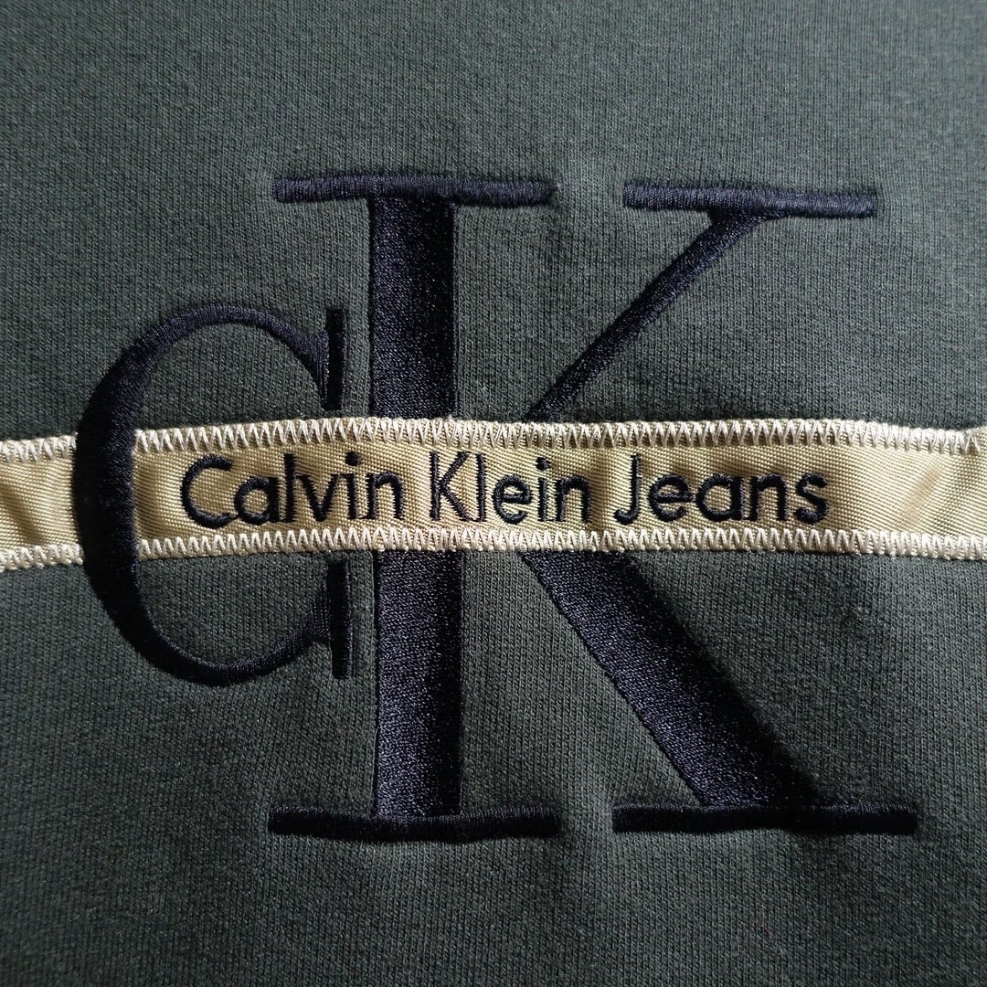 90s "Calvin Klein" Green Logo Embroidery Design Sweat