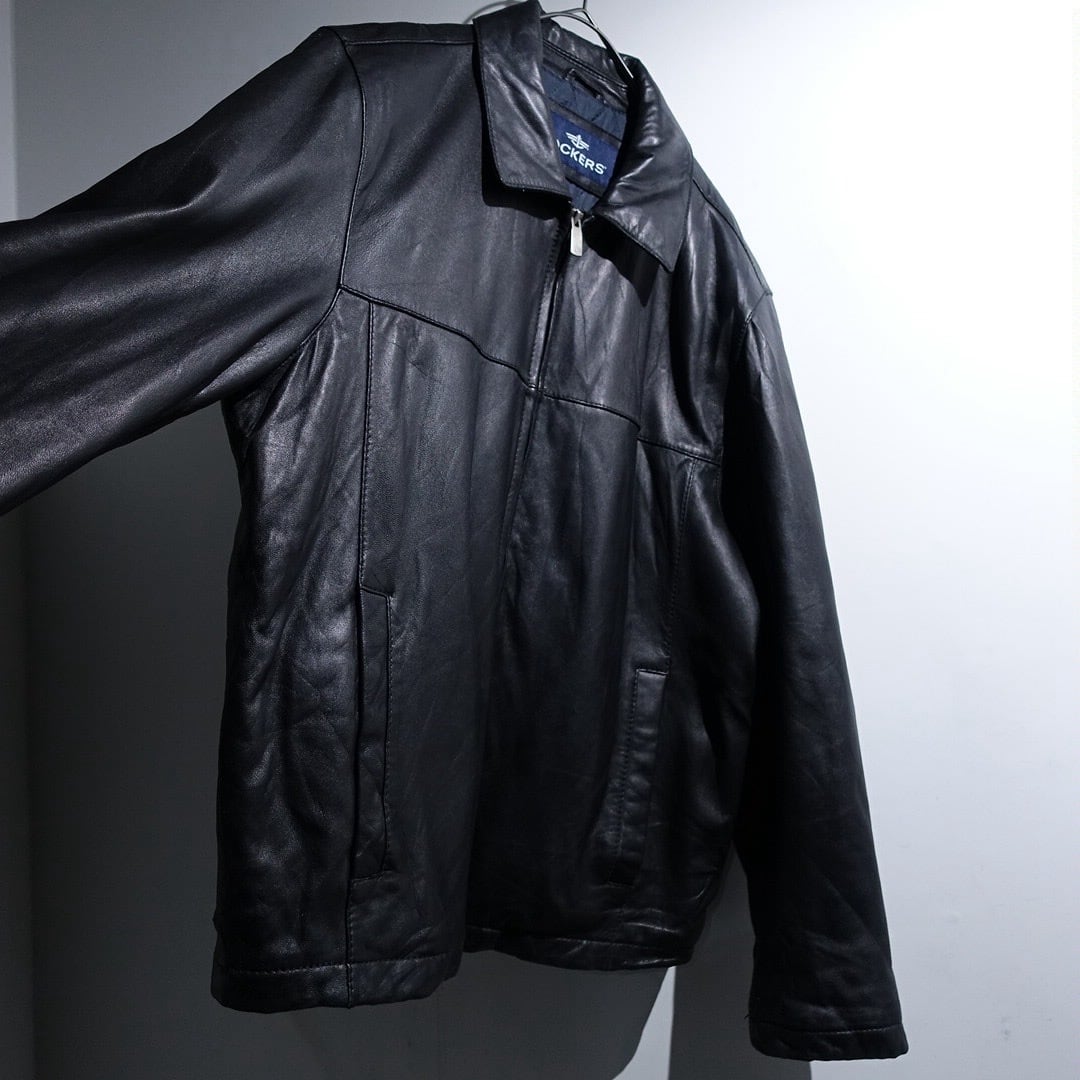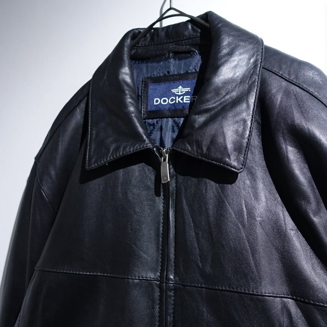 90s "DOCKERS" Black Leather Swing Top Blouson