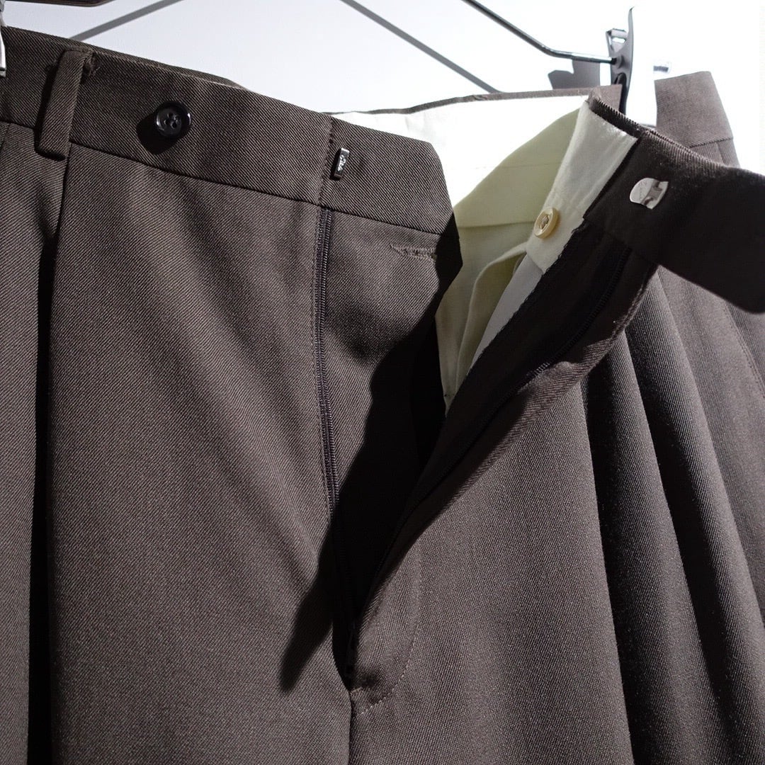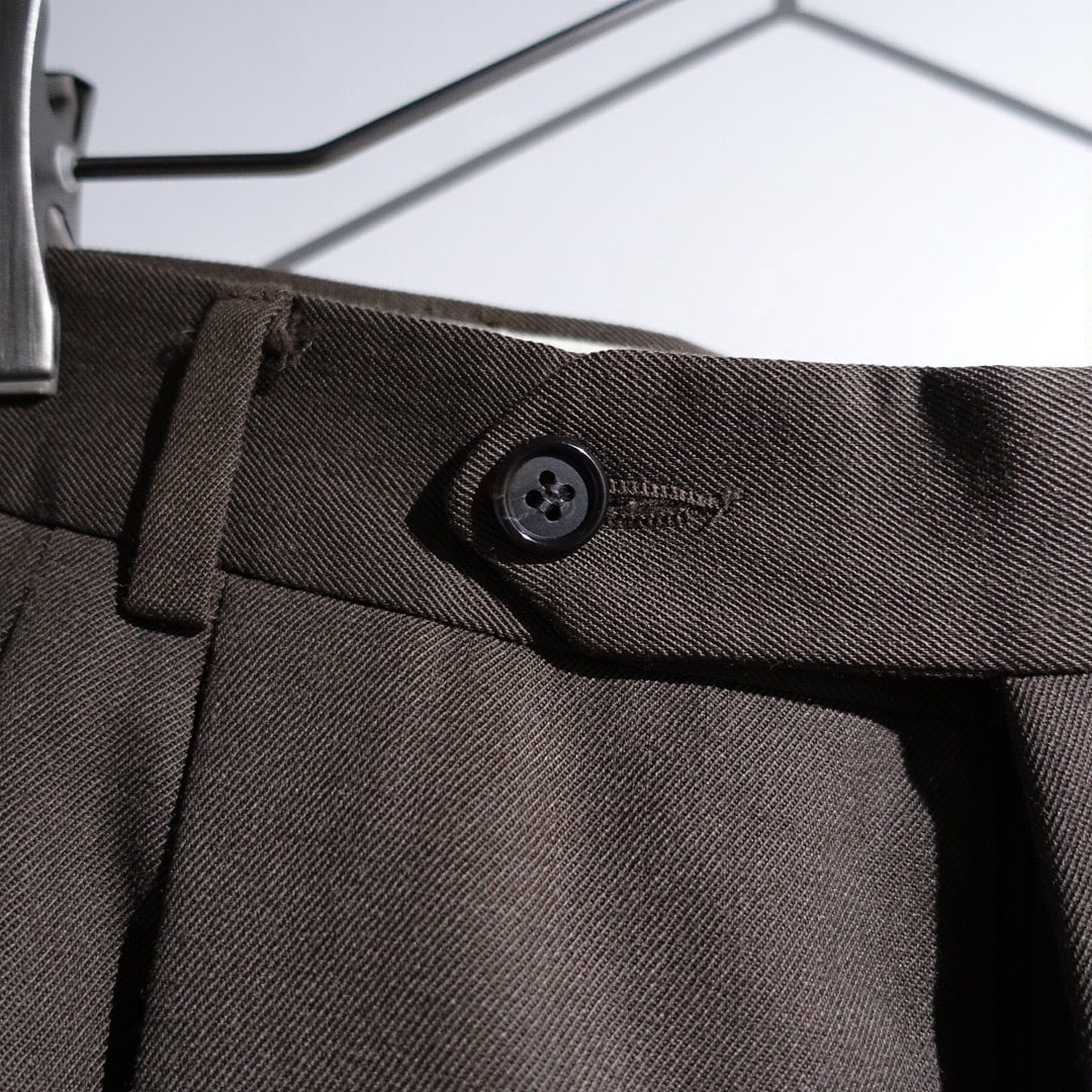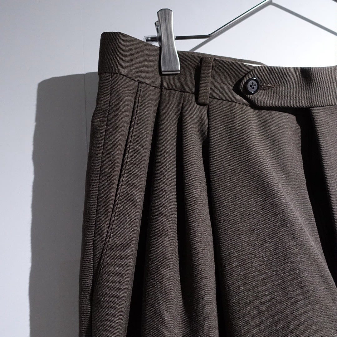 90s "GIVENCHY" Brown Gabardine 3-Tuck Wide Straight Slacks