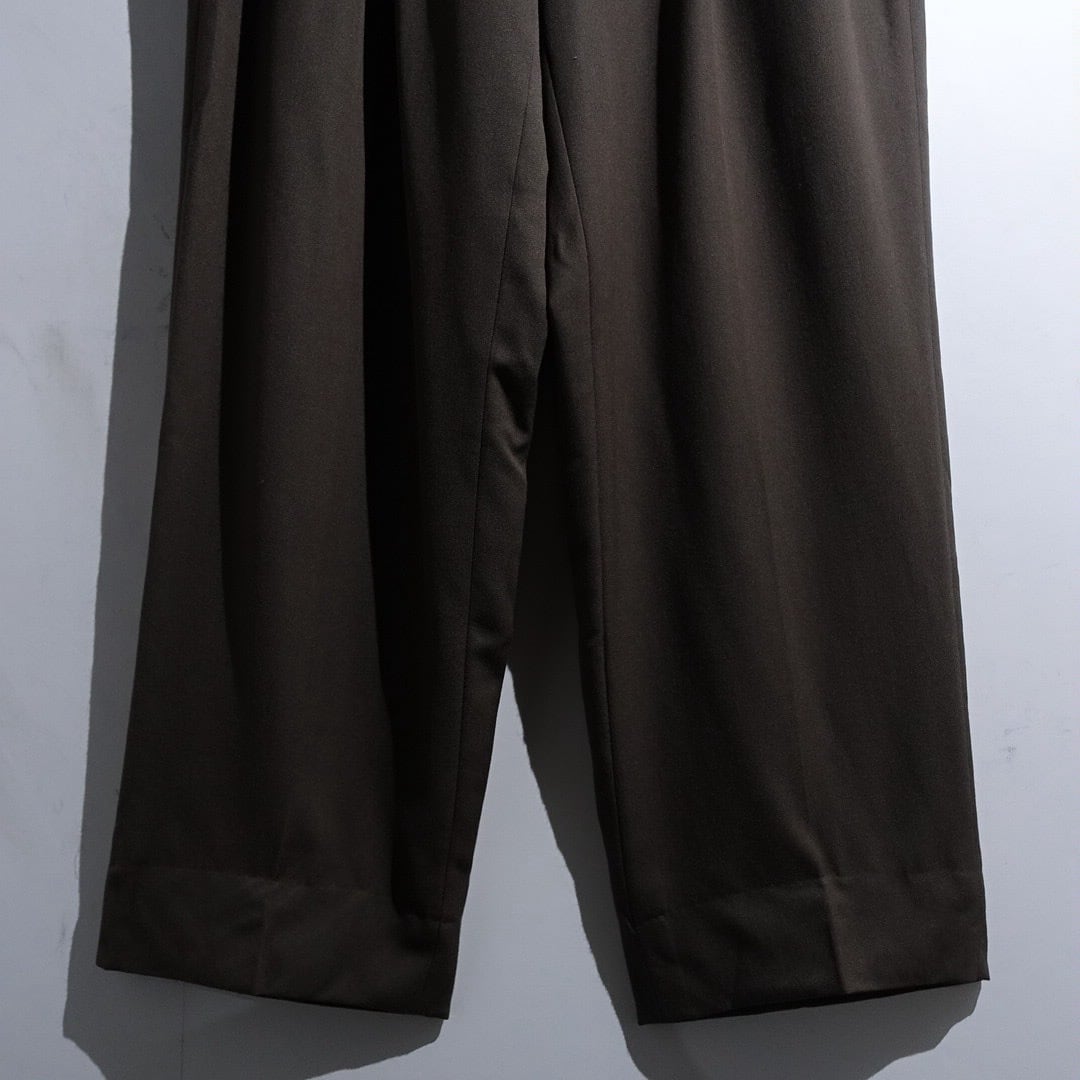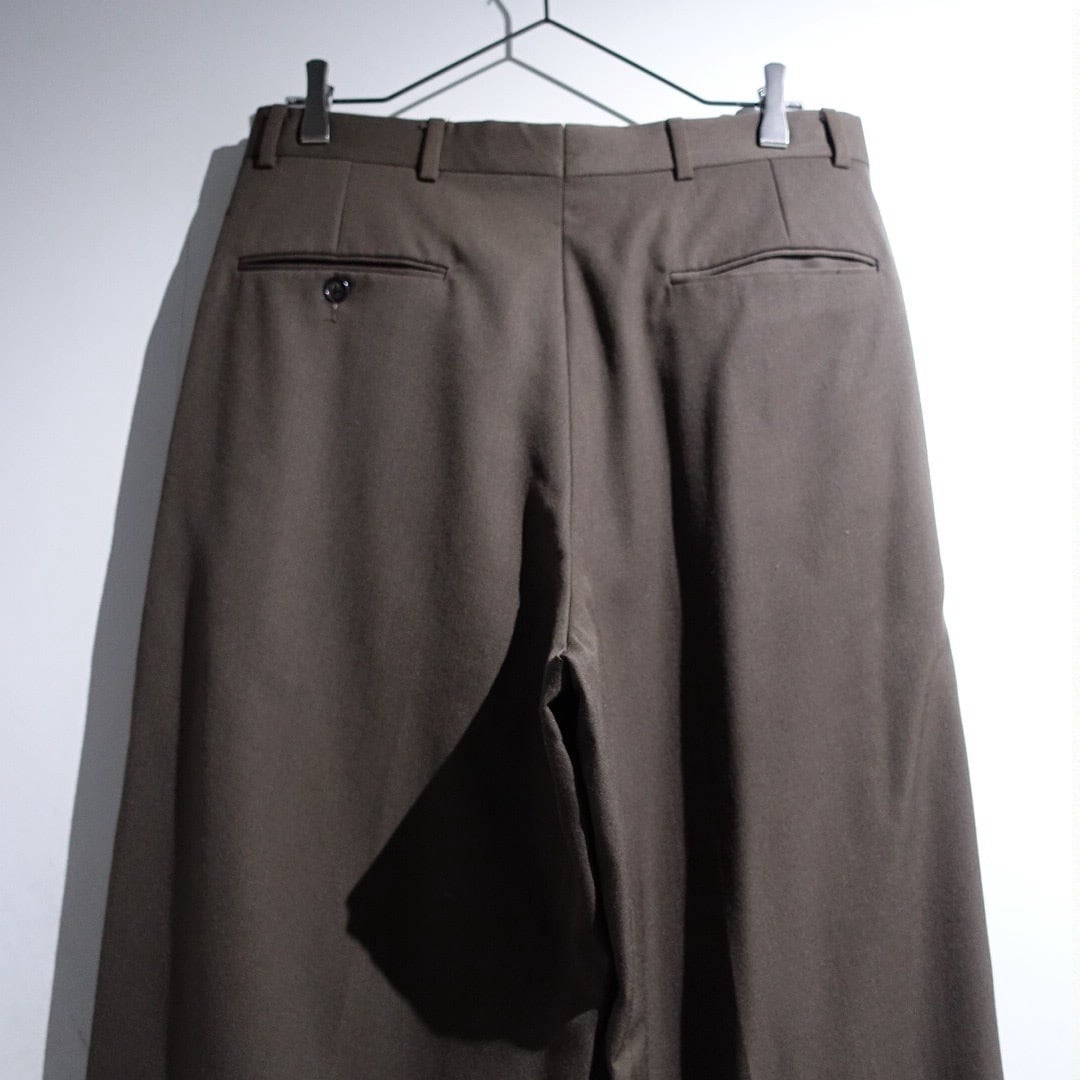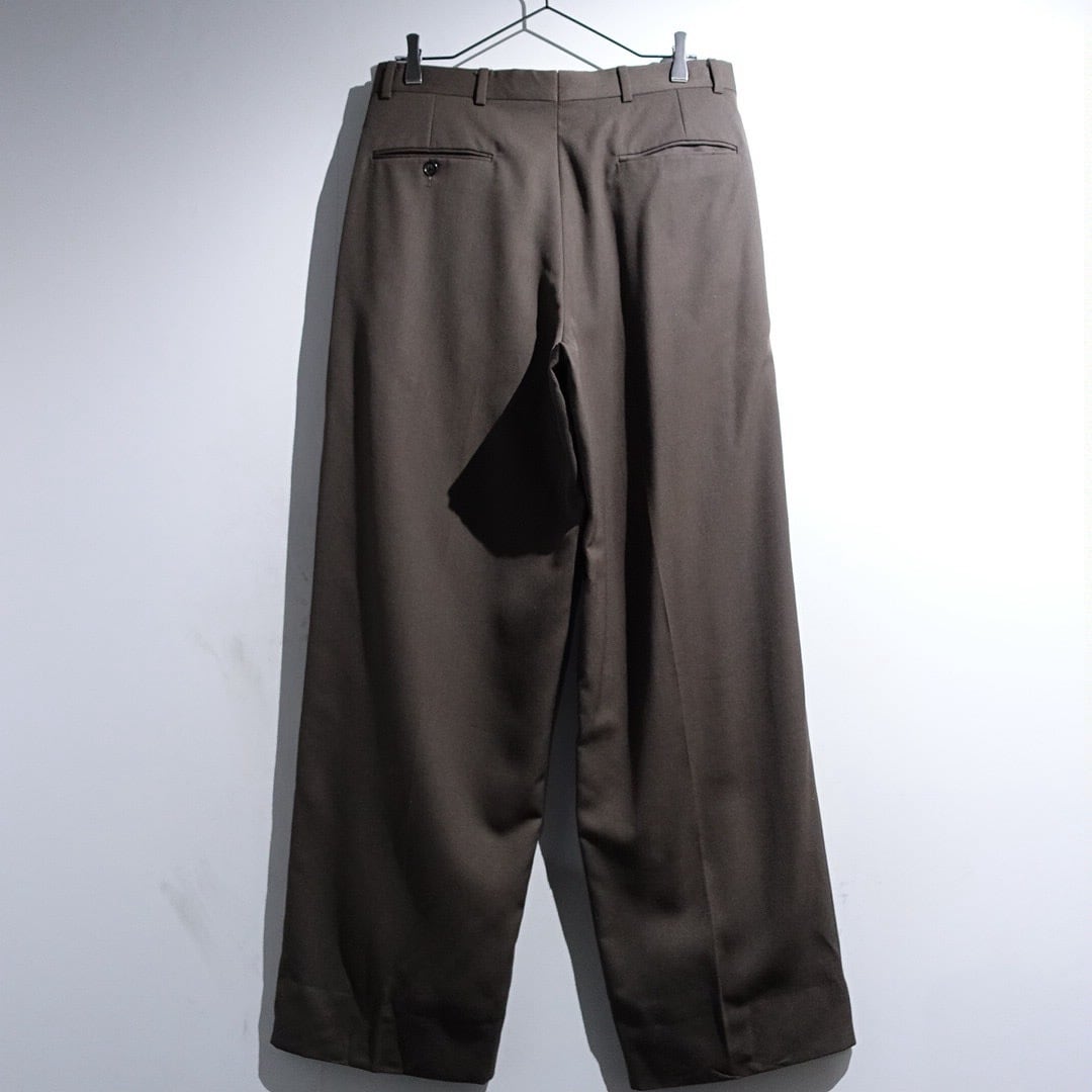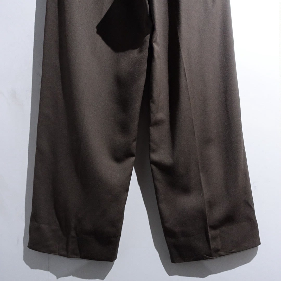 90s "GIVENCHY" Brown Gabardine 3-Tuck Wide Straight Slacks