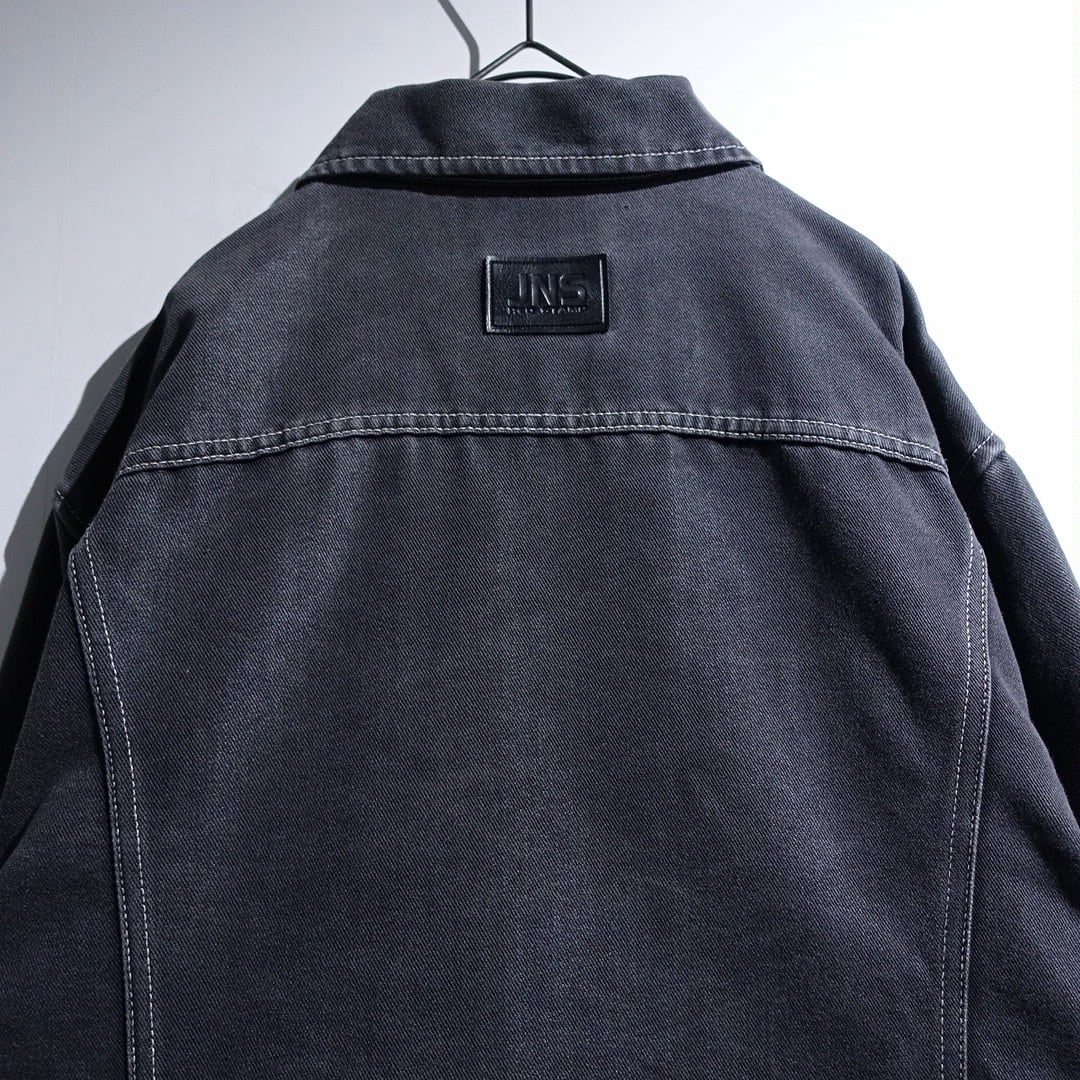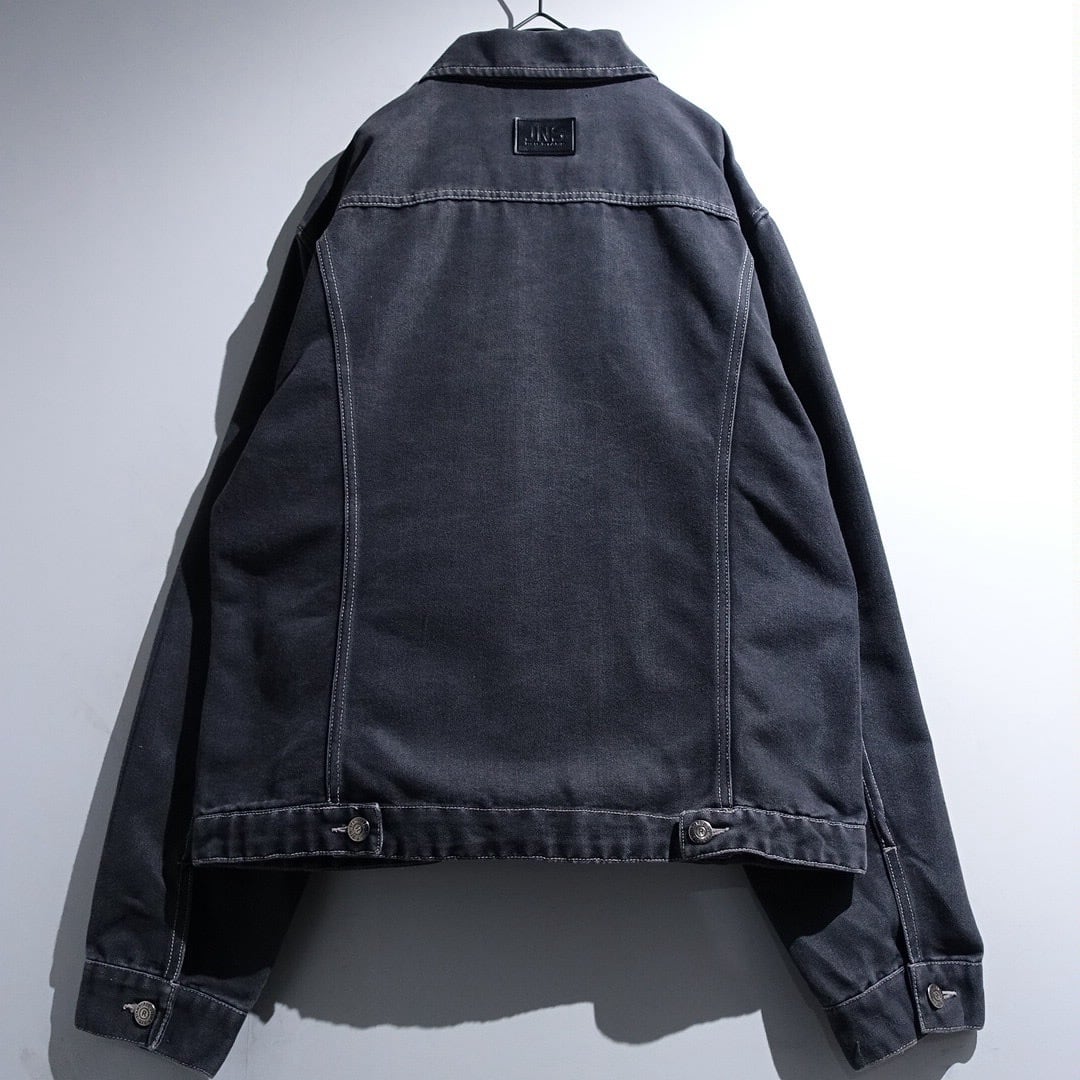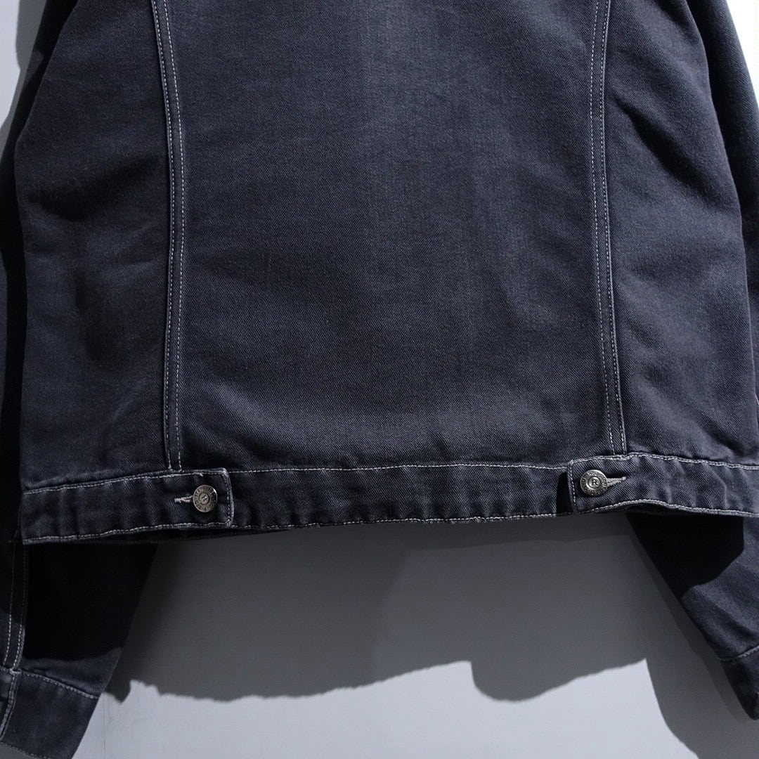90s Black Lustrous Stitchwork Design Trucker Jacket