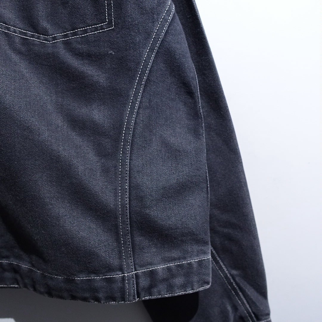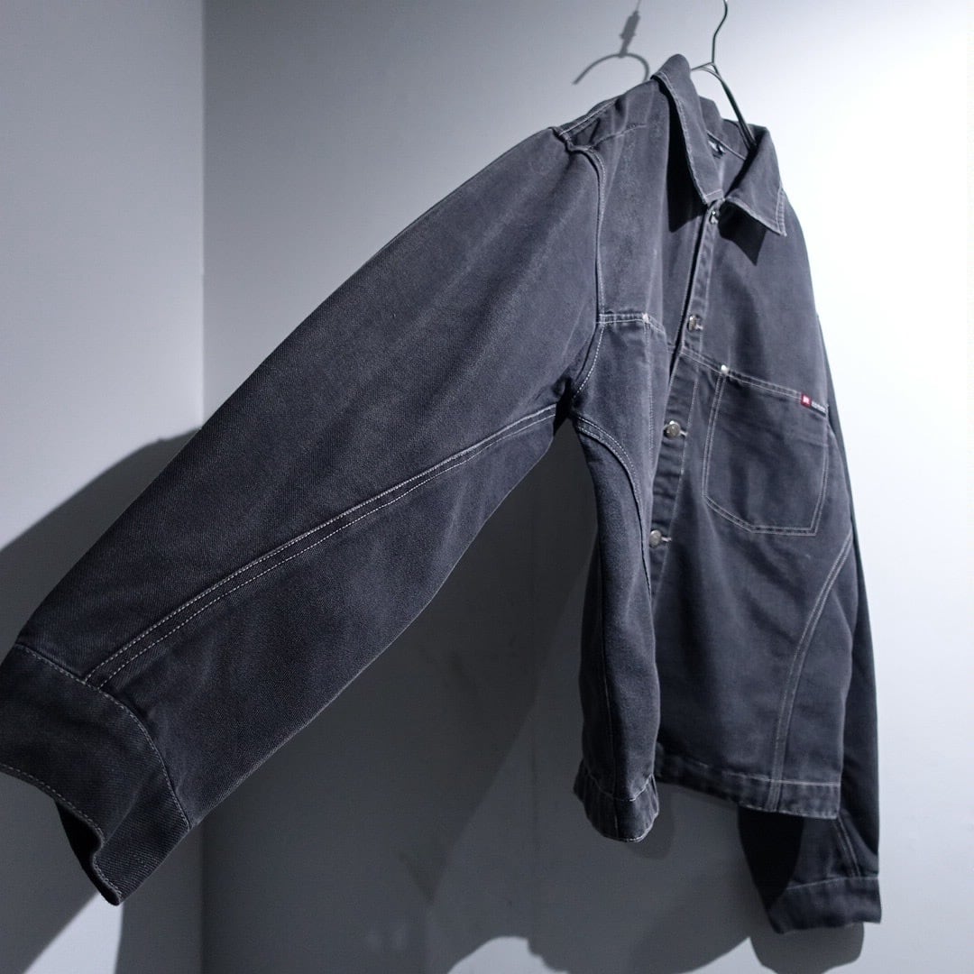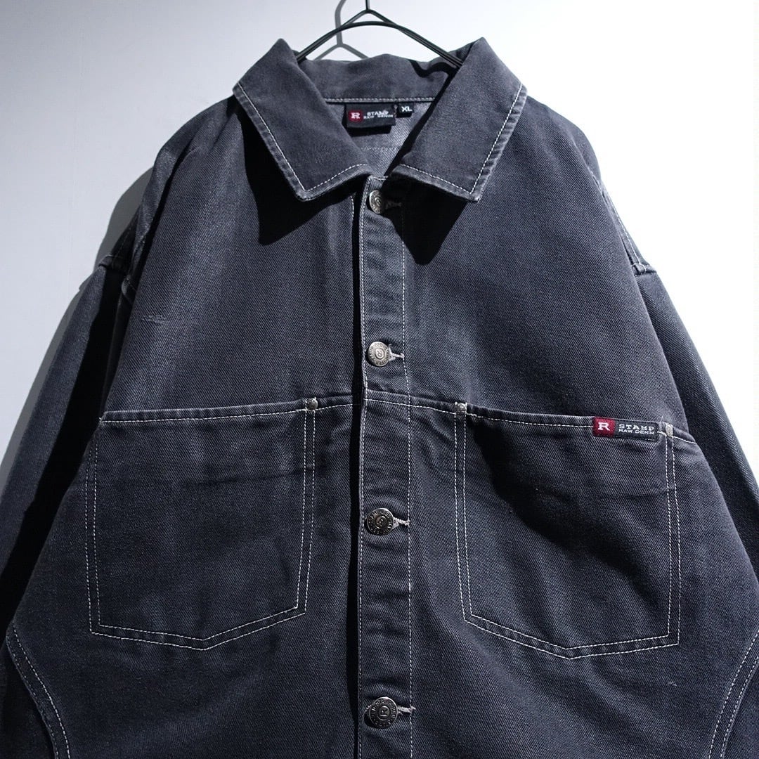 90s Black Lustrous Stitchwork Design Trucker Jacket