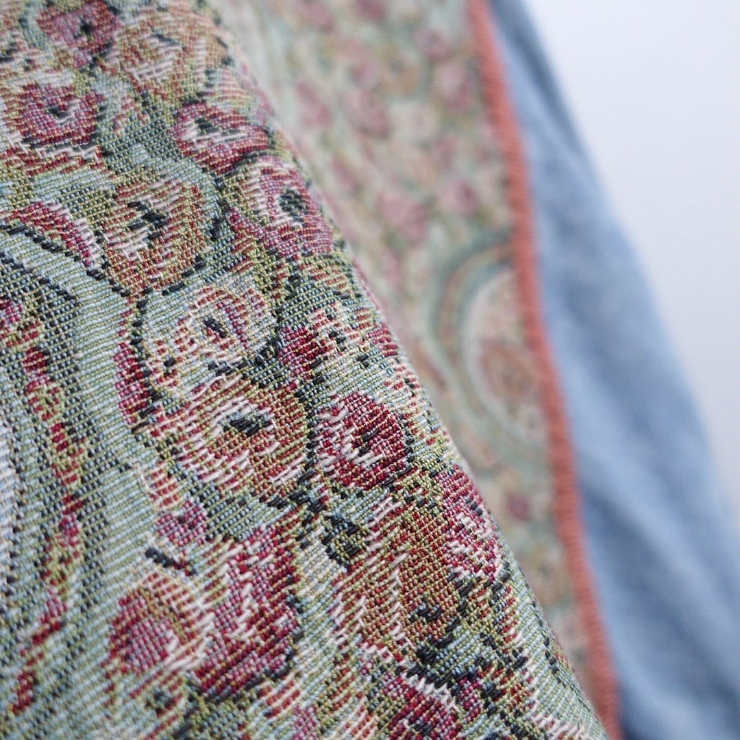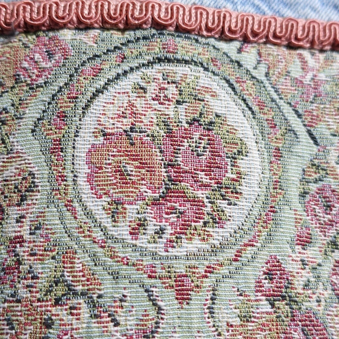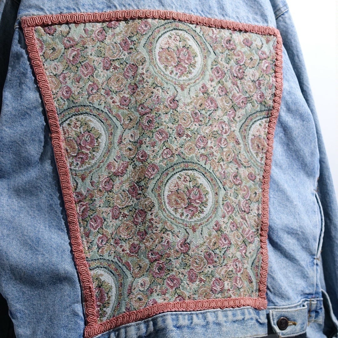 Denim Flower Gobelin Fabric Design Trucker Jacket