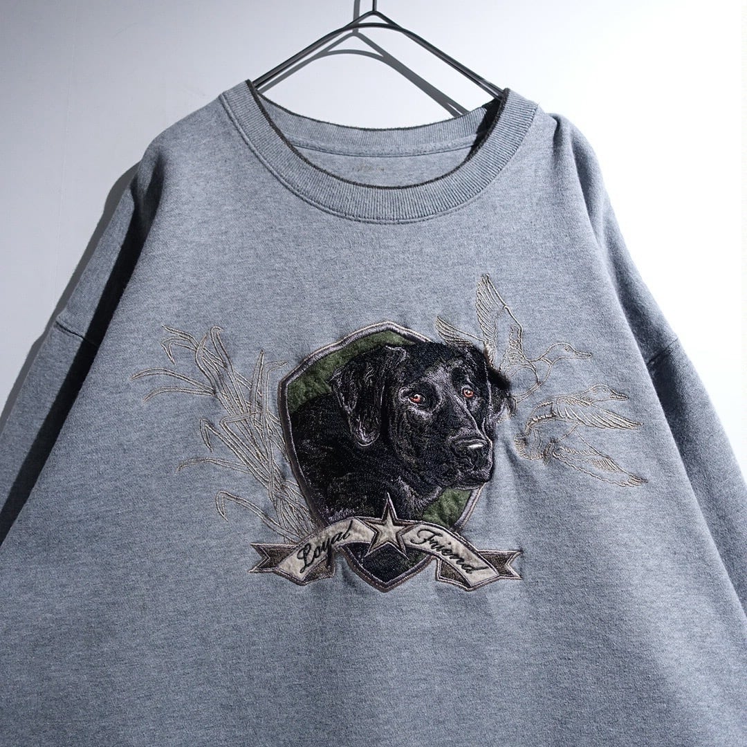 "Craft & Barrow" Gray Dog Embroidery Design Animal Sweatshirt