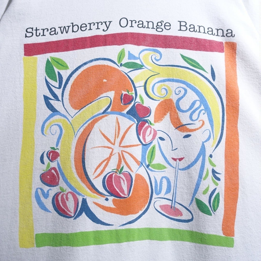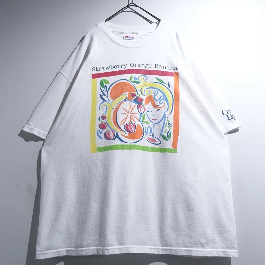 O0s "Hanes" White Mixed Juice Artistic Print T-Shirt
