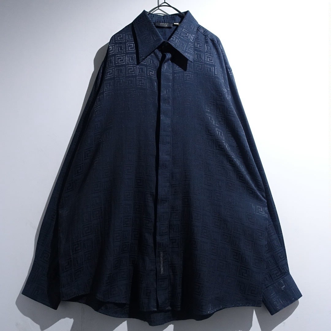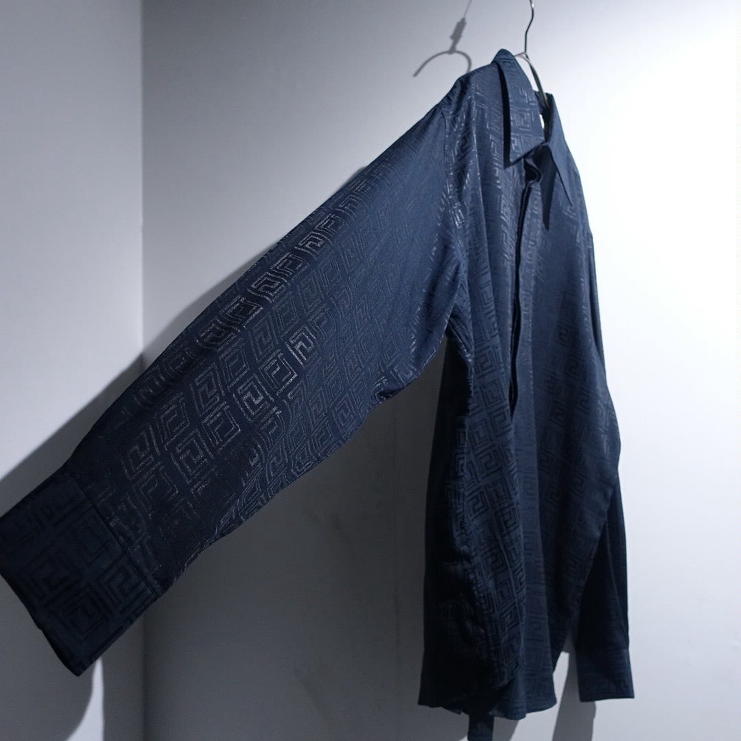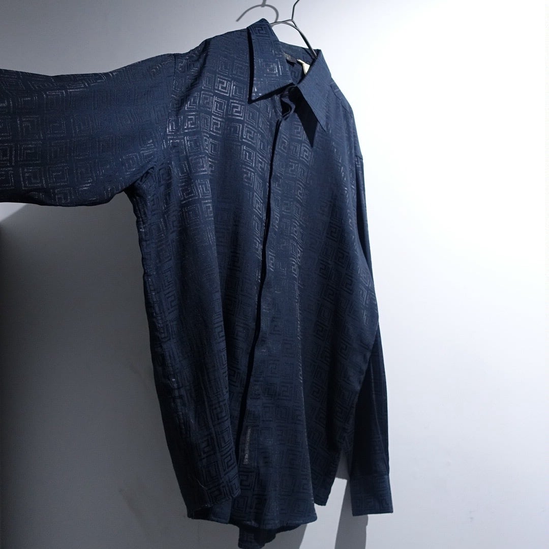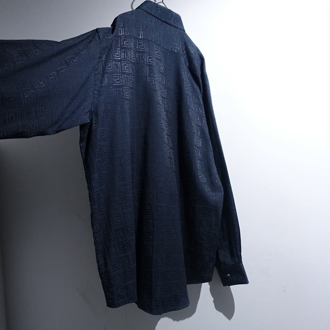 "Versace" Black Geometric Shadow Pattern Design Drape Shirt