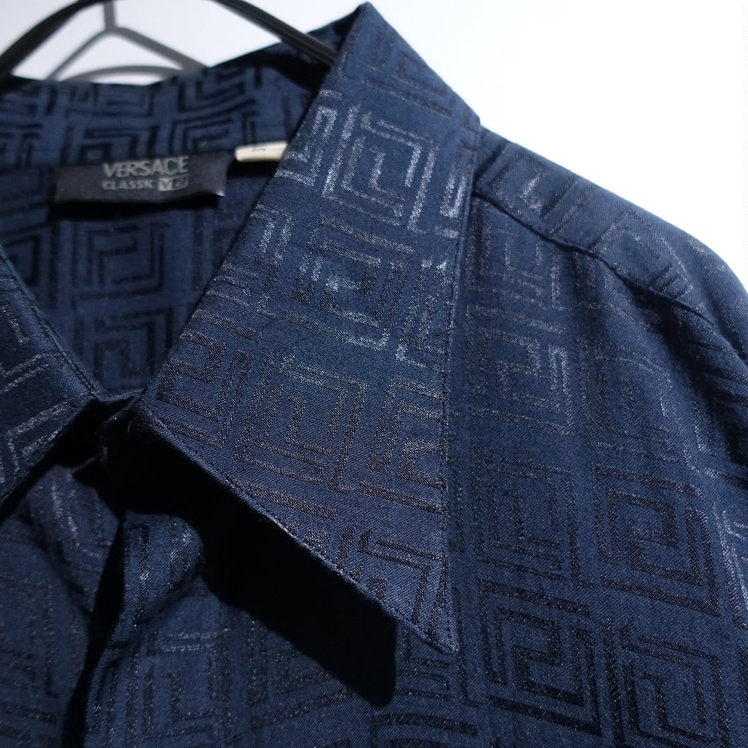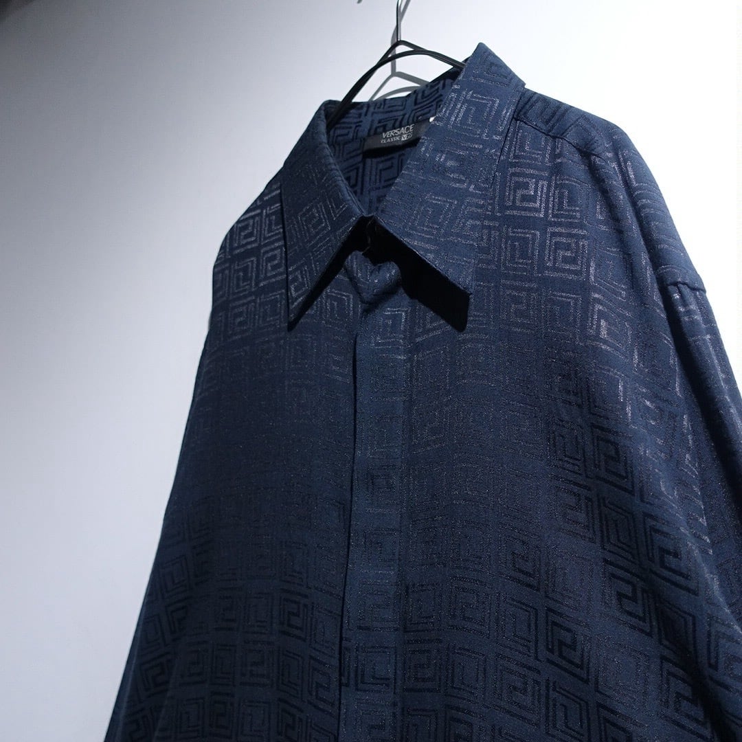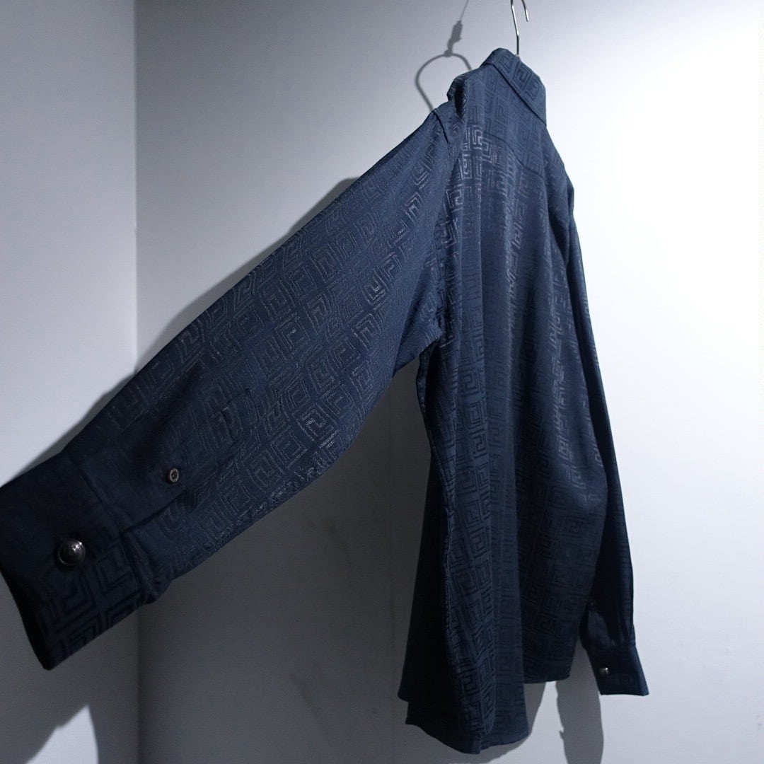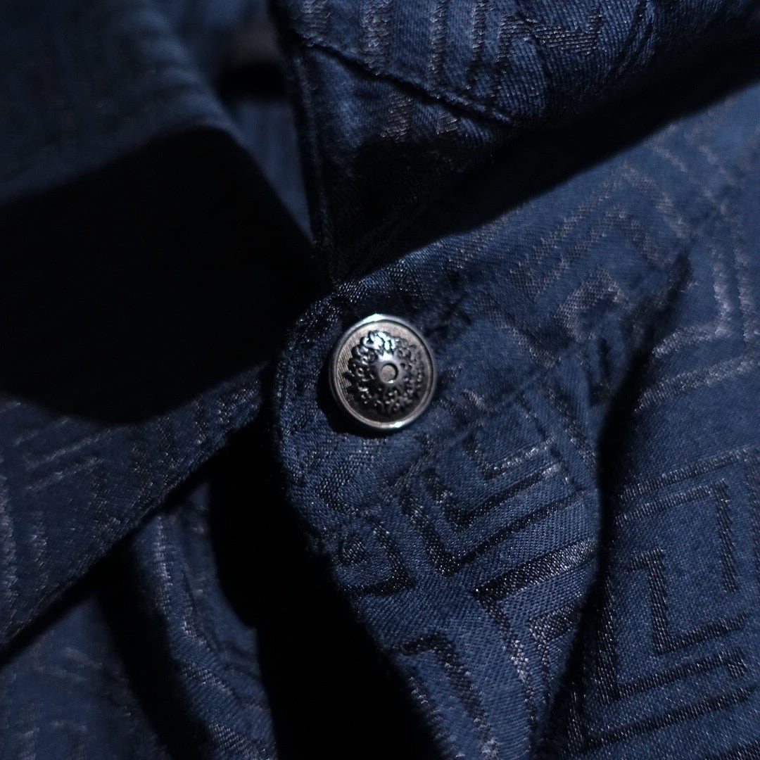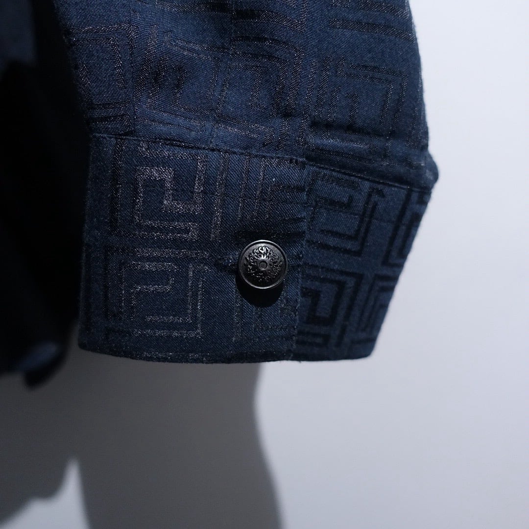 "Versace" Black Geometric Shadow Pattern Design Drape Shirt