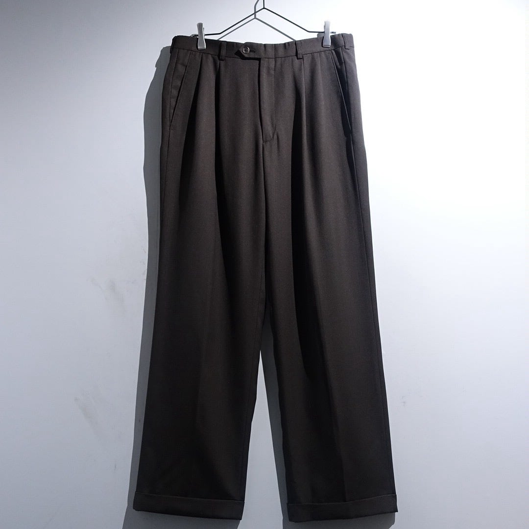 "haggar" Brown Check 2-Tuck Wide Straight Double Slacks