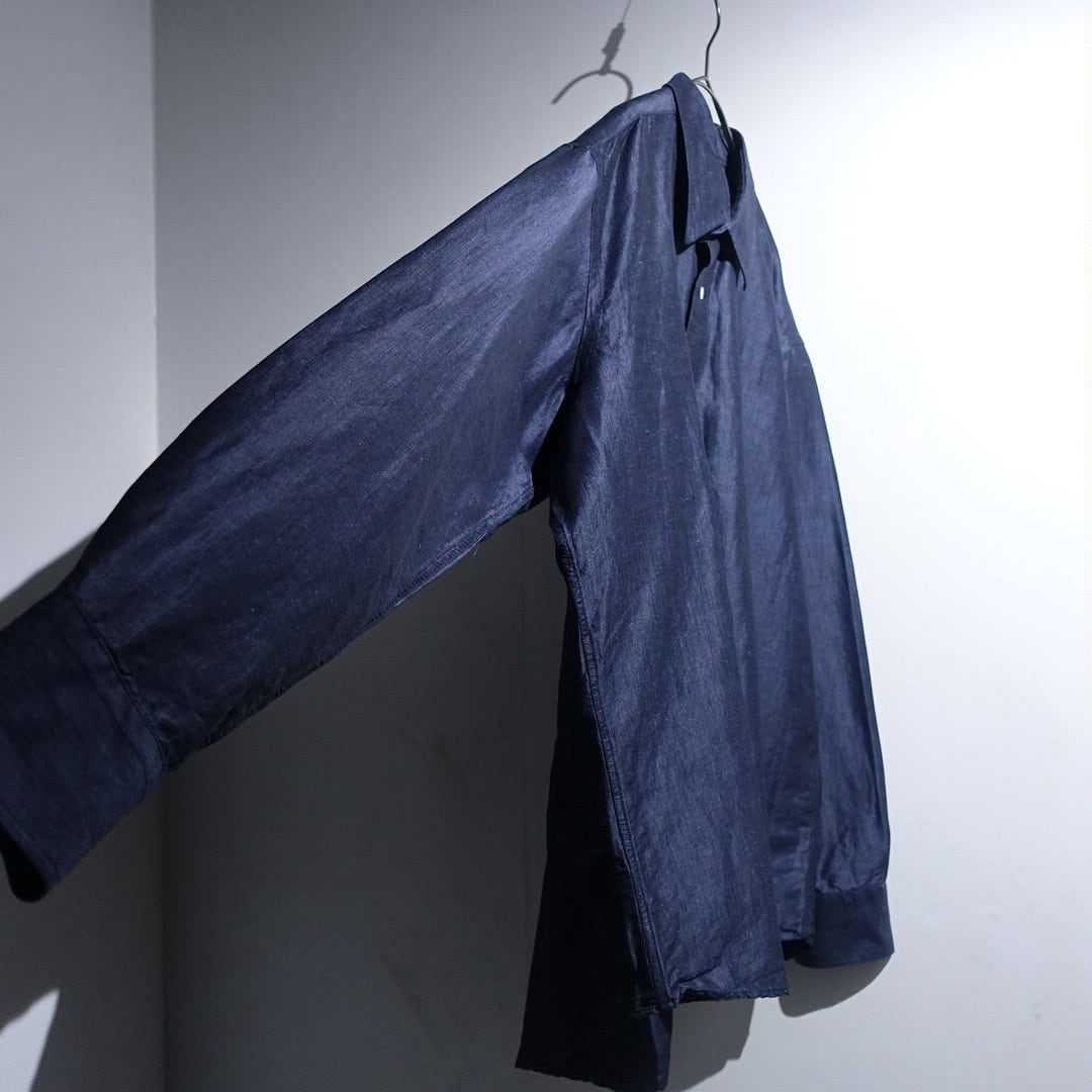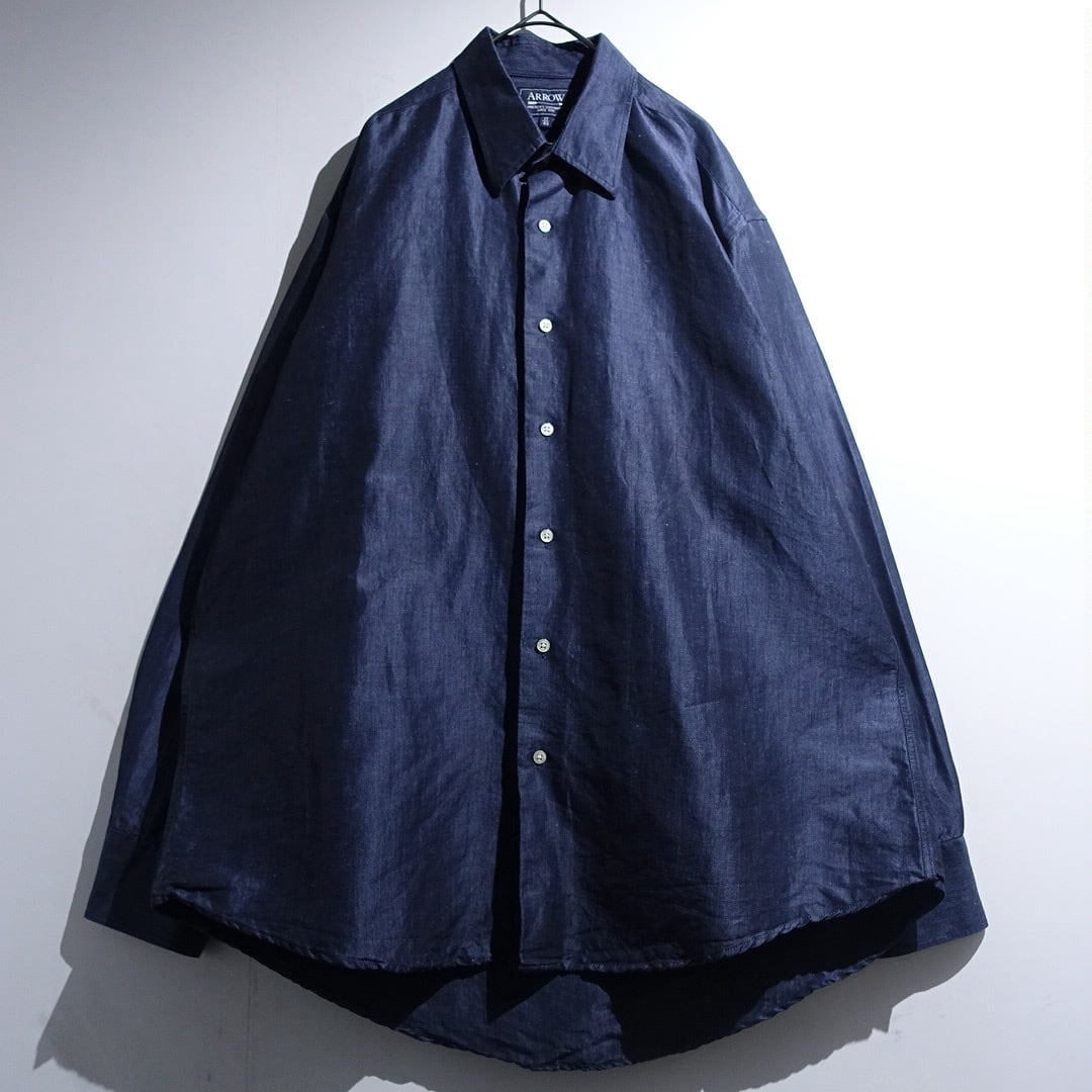 "ARROW" Navy Lustrous Linen & Cotton Shirt