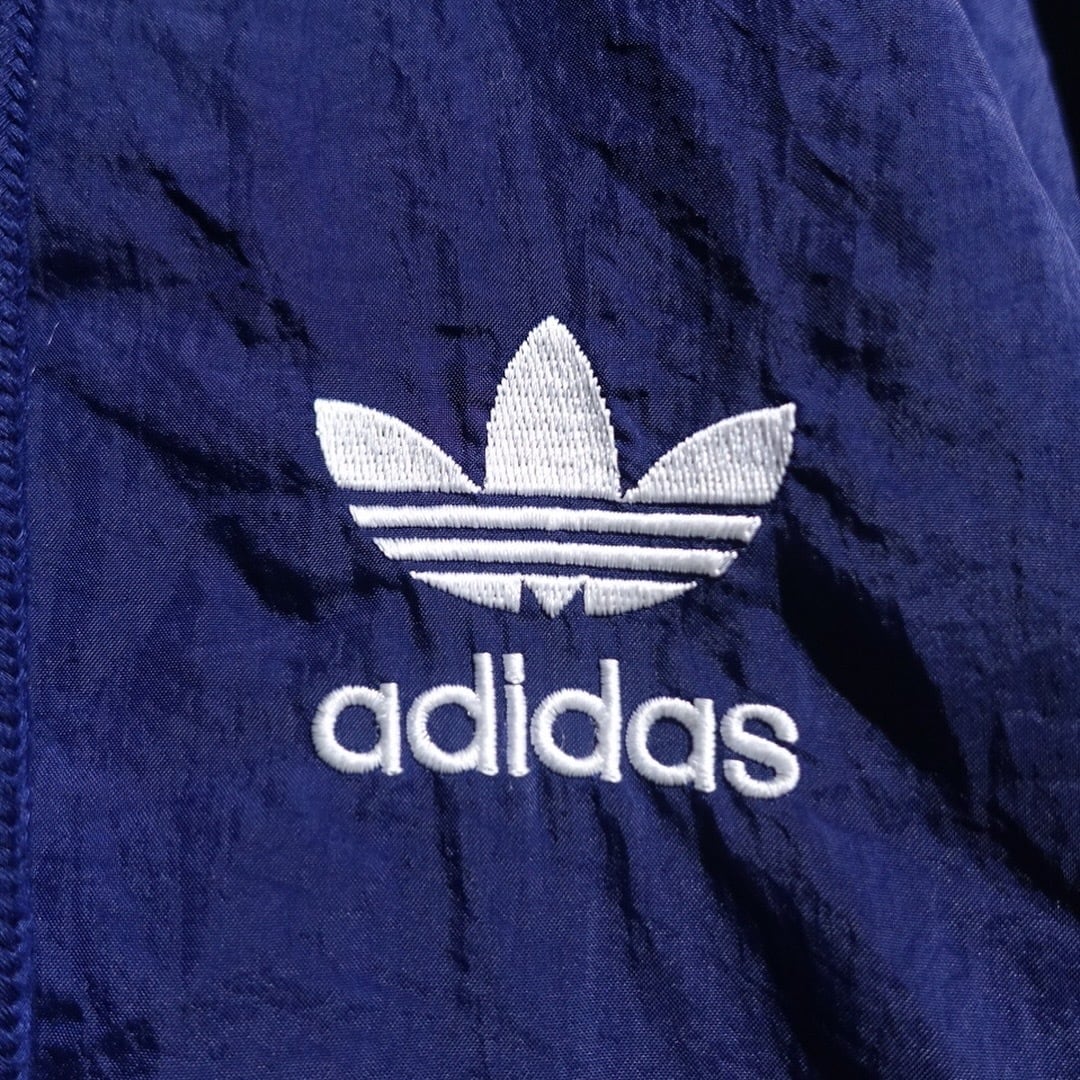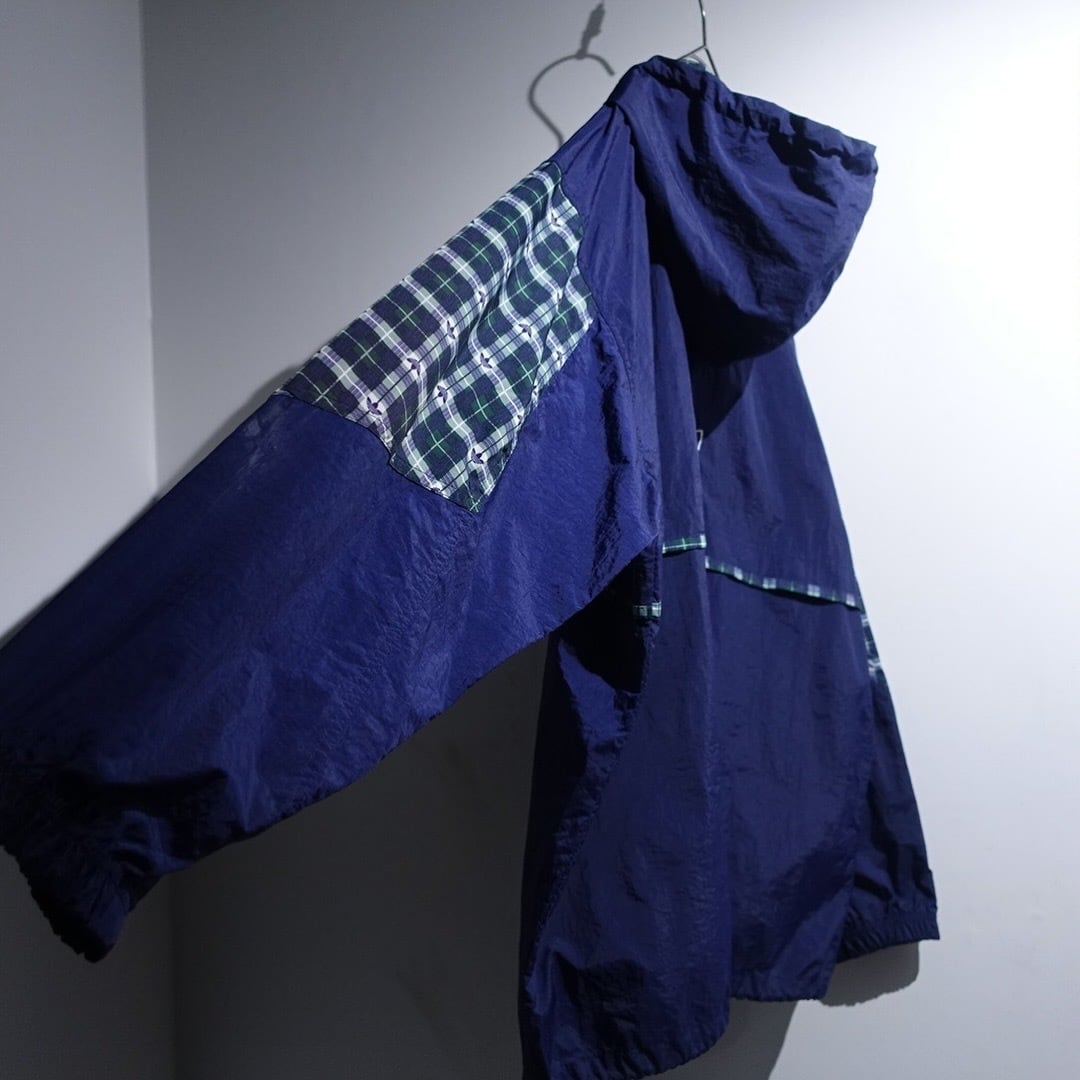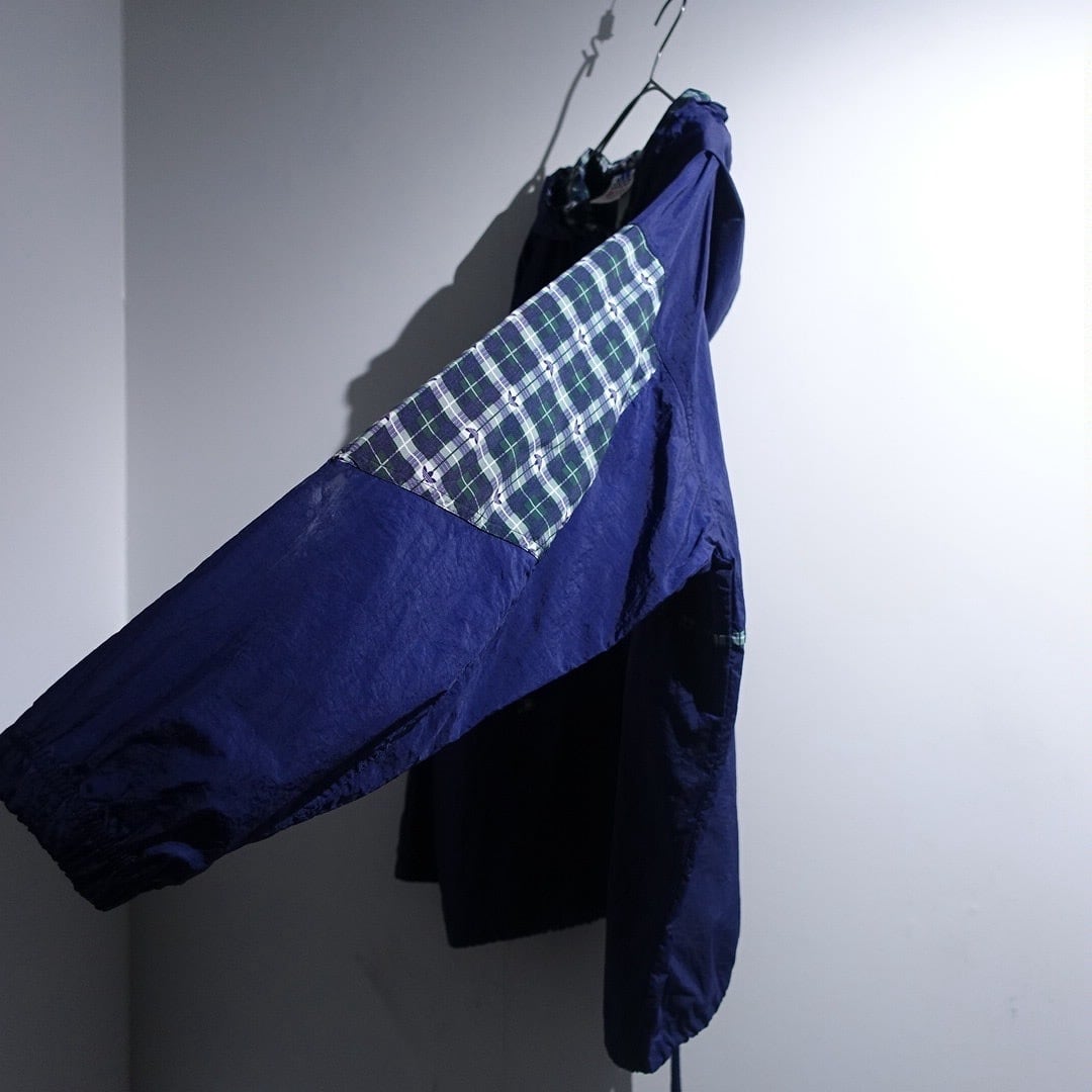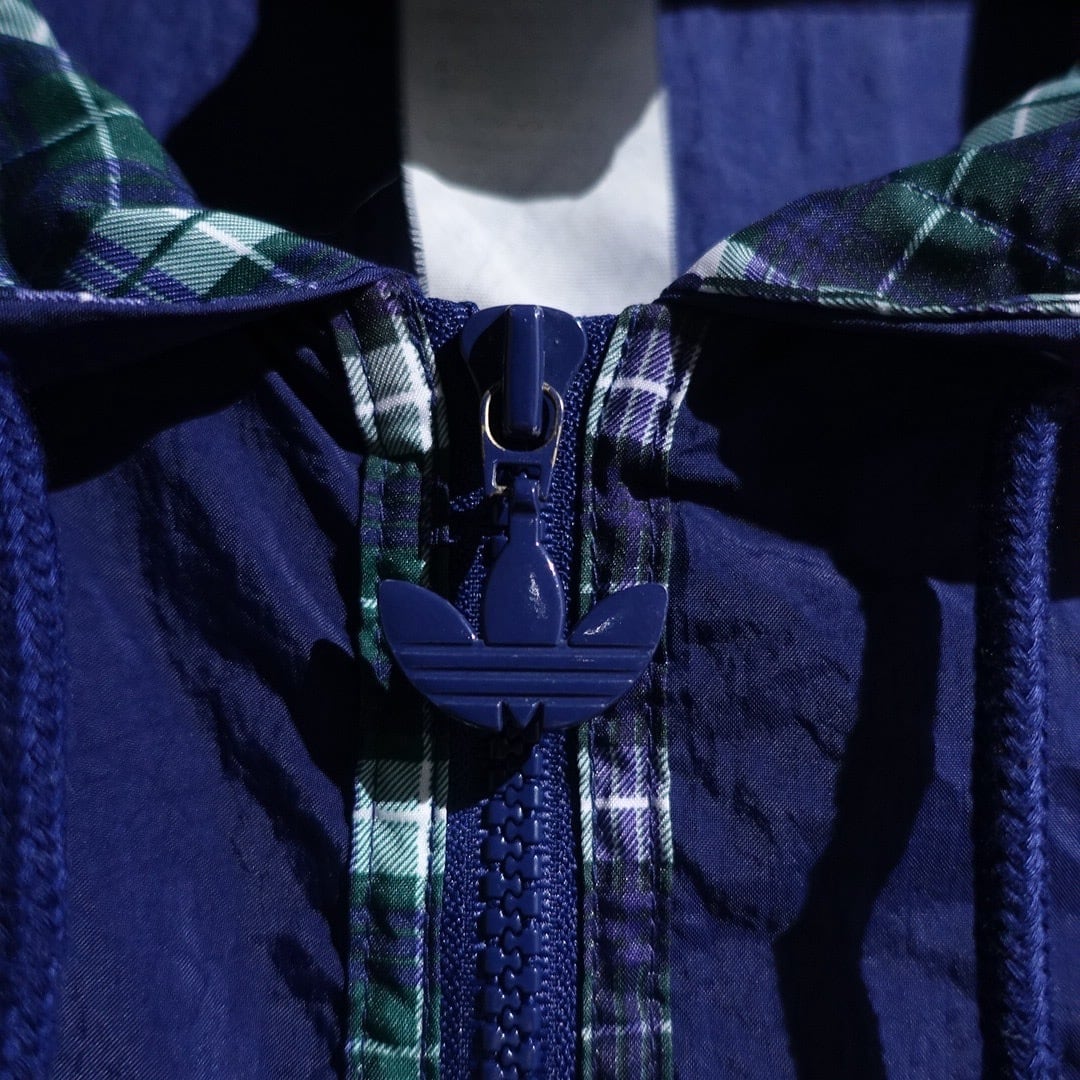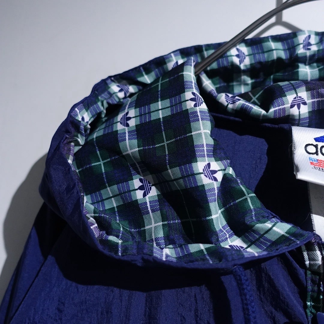 90s "adidas" Navy Logo Check Switching Half-Zip Design Nylon Anorak Jacket