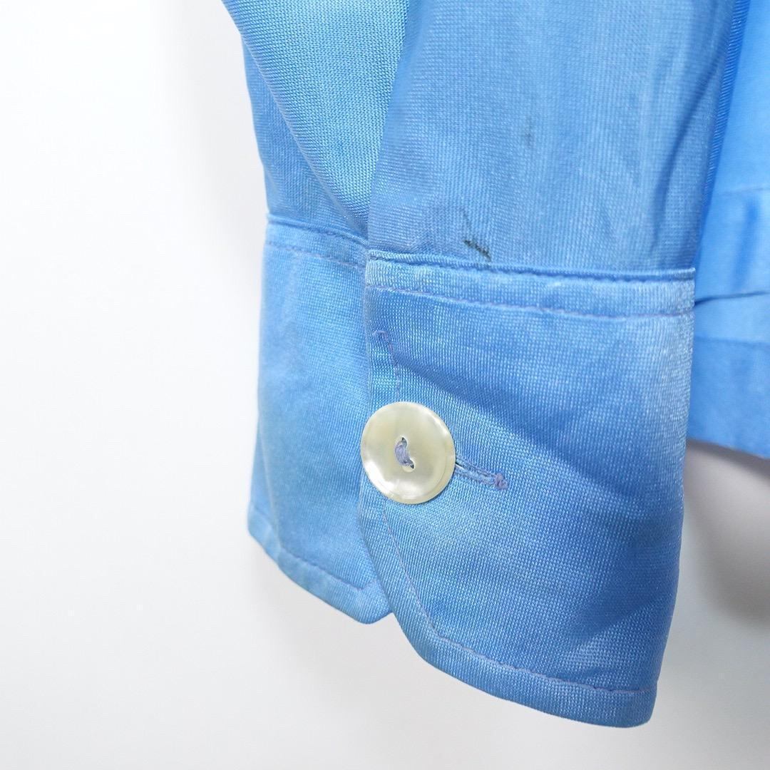 70s Blue Nylon Plain vintage Open Collar Shirt