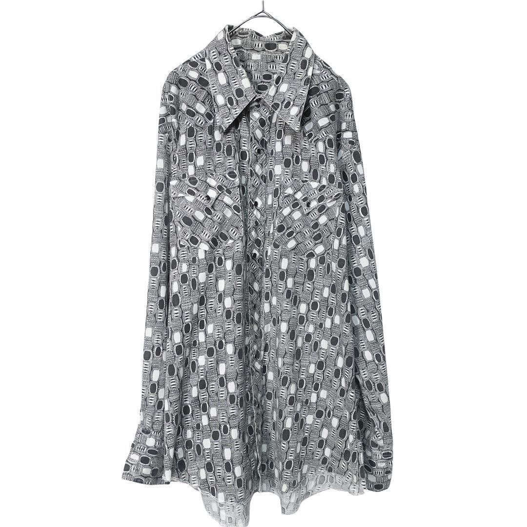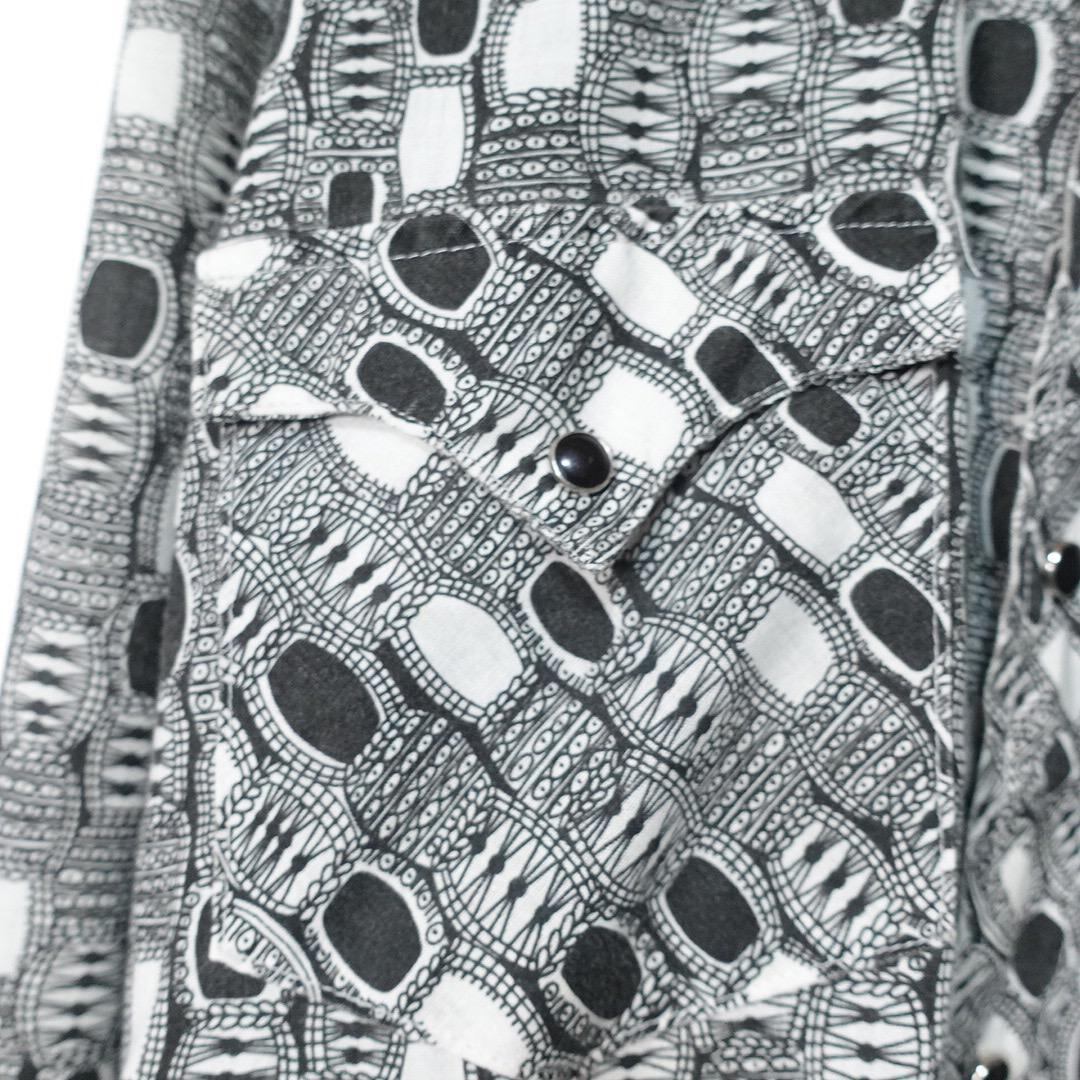 Black White Total Pattern Design Snap Button vintage Dress Shirt
