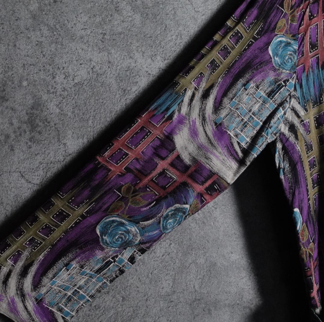 パープルをベースにピンク、ライトブルー、グリーンなどの様々な色をダークトーンでまとめたカラーリング。