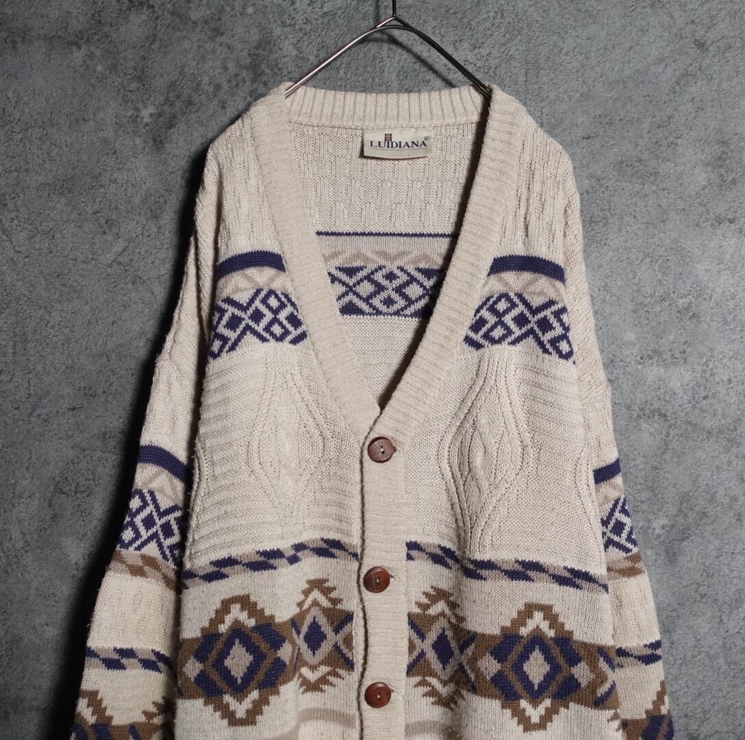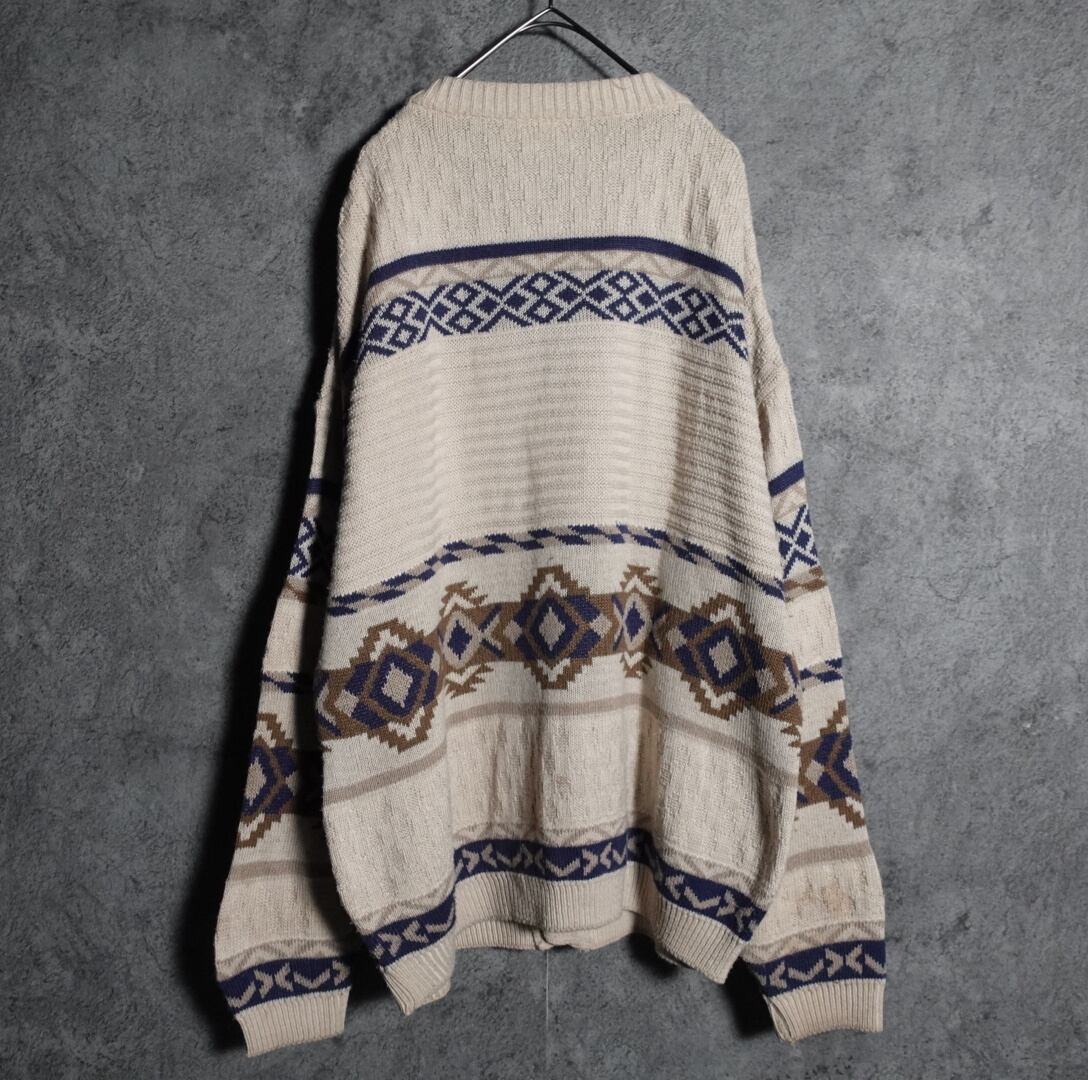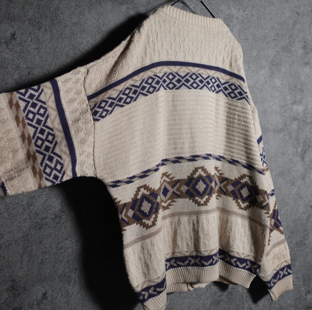 ネイティブ調の柄と編み方をボーダー状に変化させた立体感のあるデザイン。