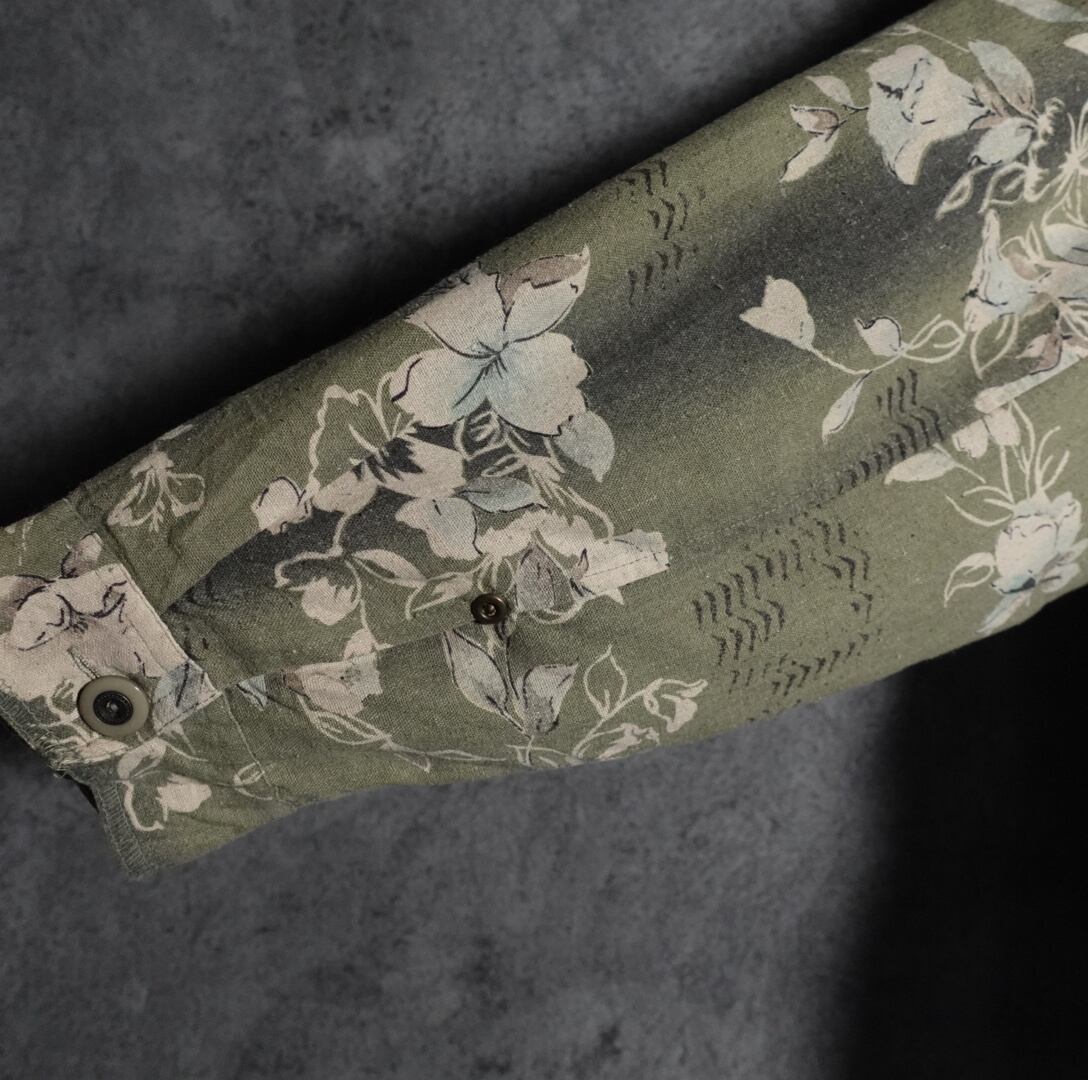 グリーンベースに、ホワイトの花柄を全面にあしらったデザインです。