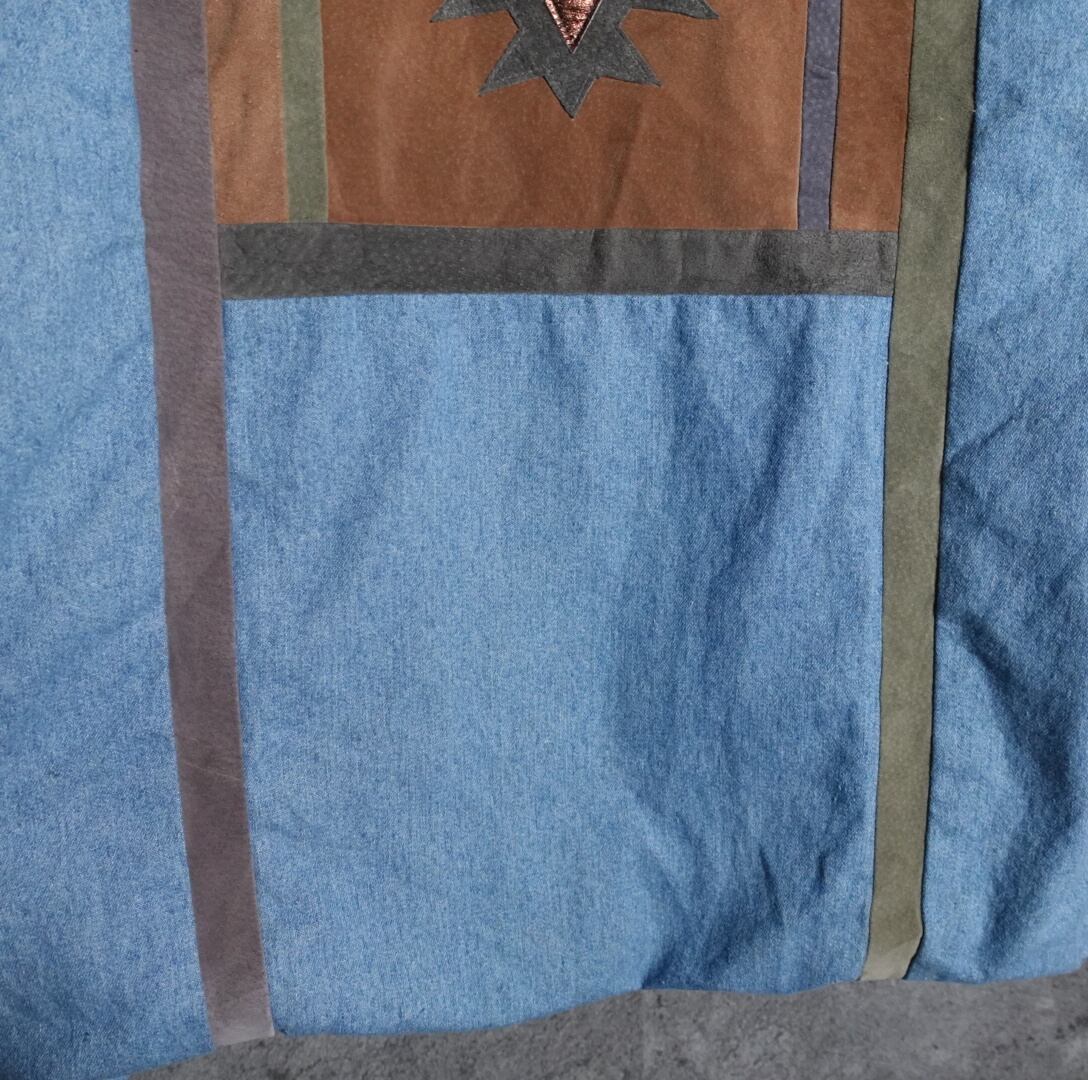 デニムをベースにベージュ、グリーン、ブラウンのスウェード生地で切替わった凝ったデザイン。