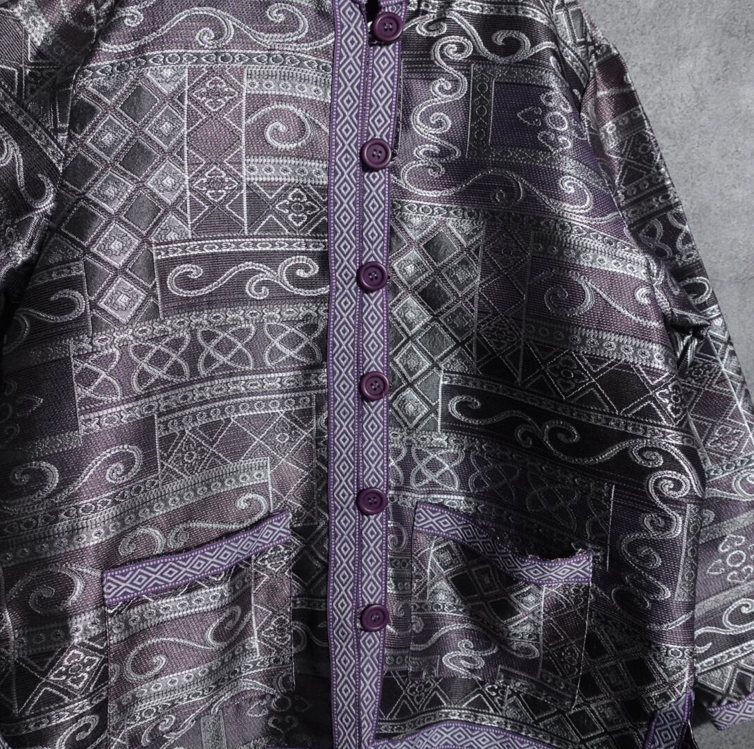 素材はポリエステル100%で光沢感があり、よりこのアイテムのデザインを際出せる生地感となっています。裏地などなく薄めの生地感なので、今の季節にちょうど良いかと。