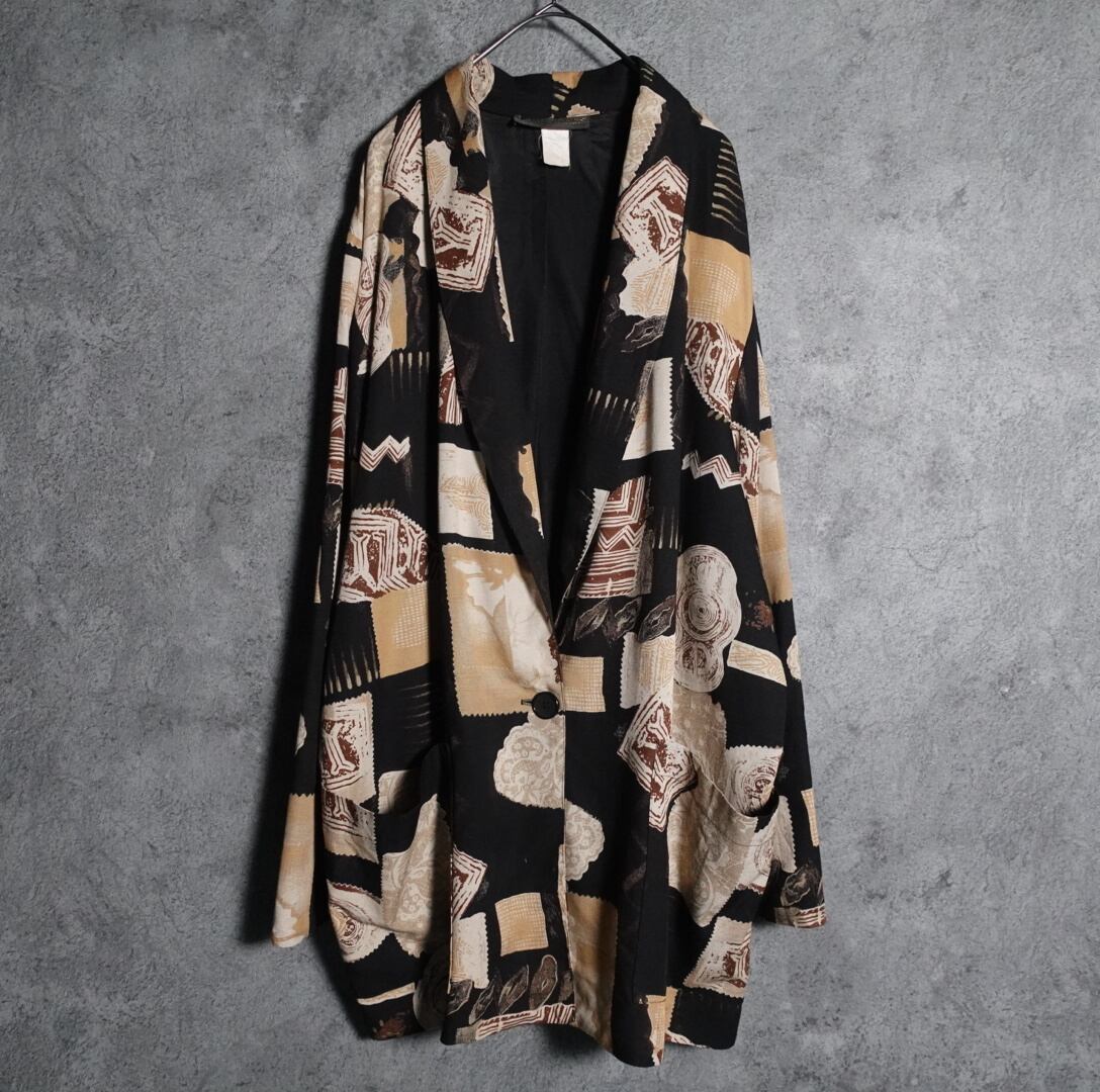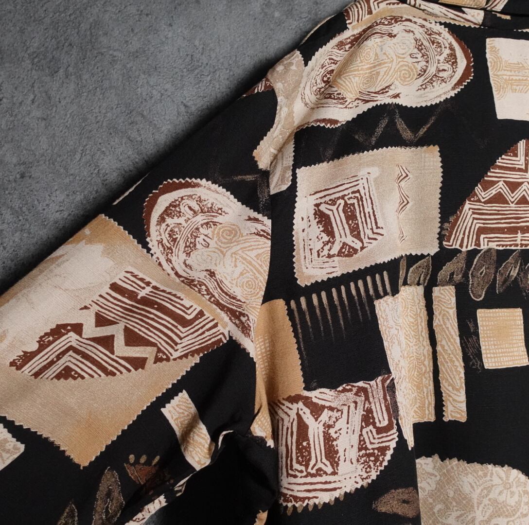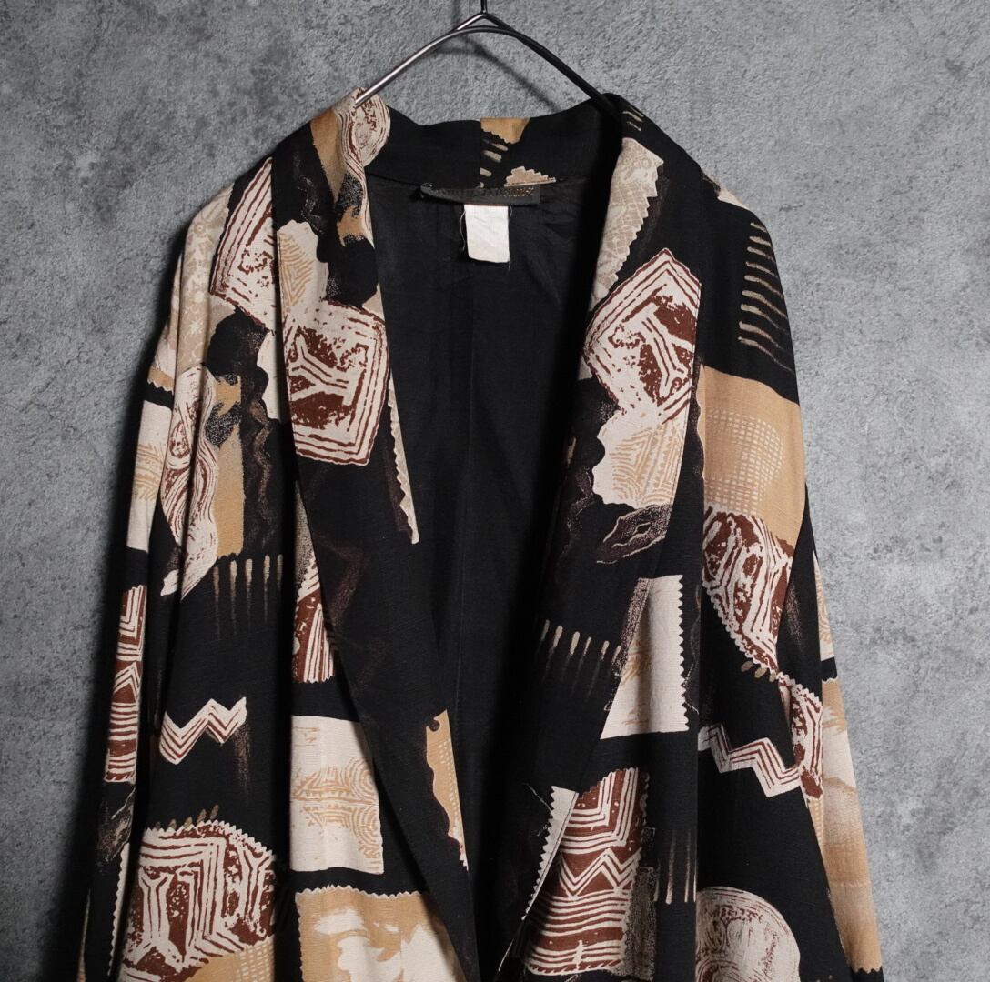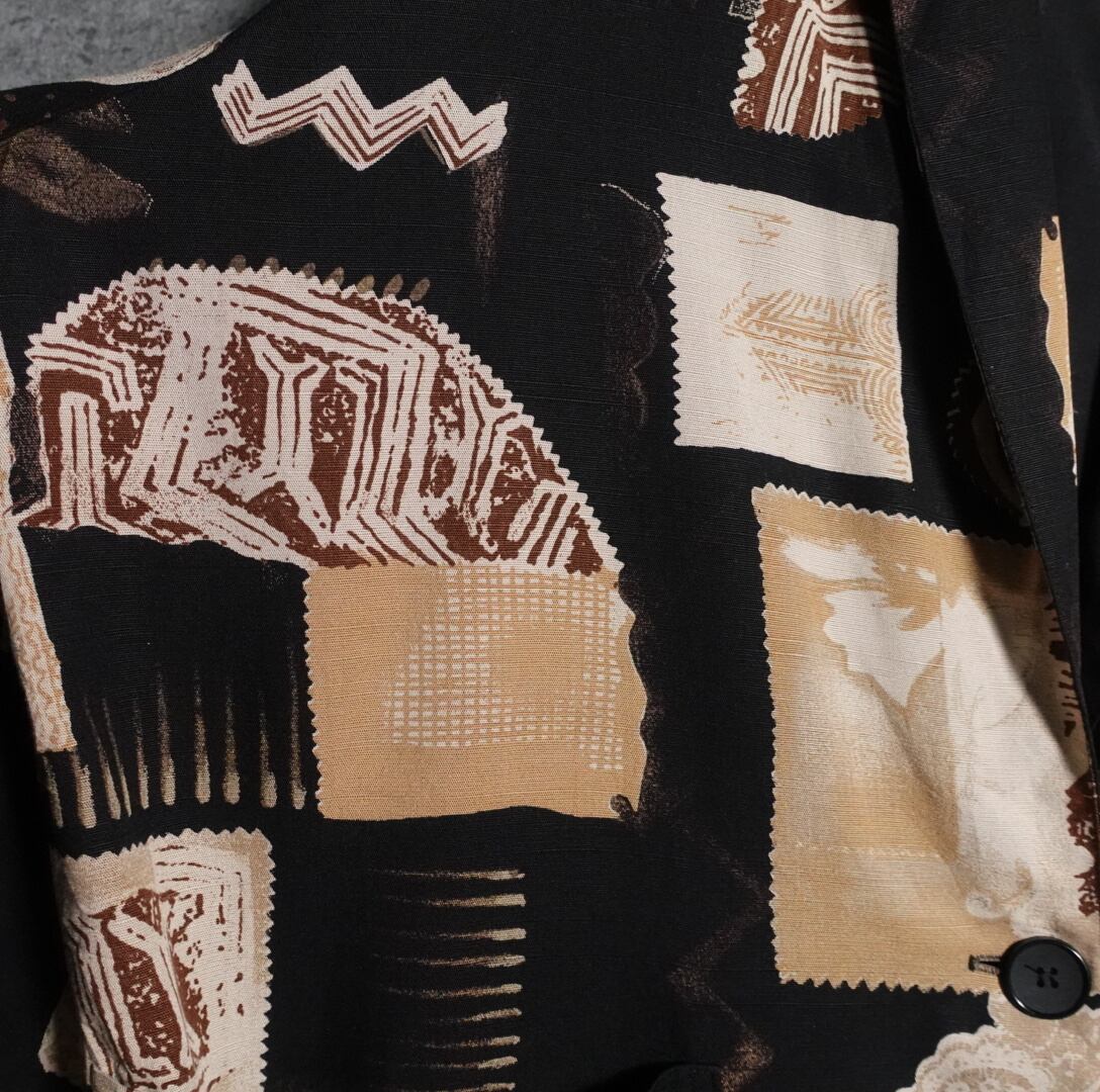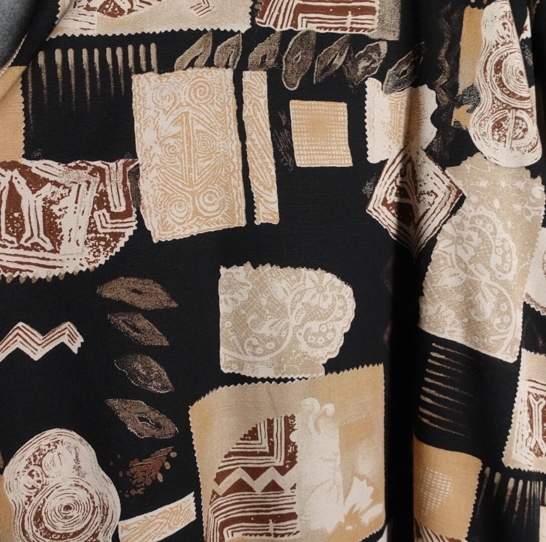 ブラックベースにベージュの様々な柄をバラバラに配置したアーティスティックなデザイン。