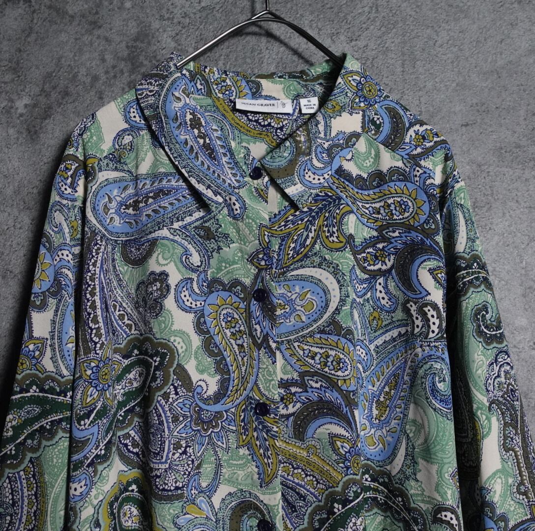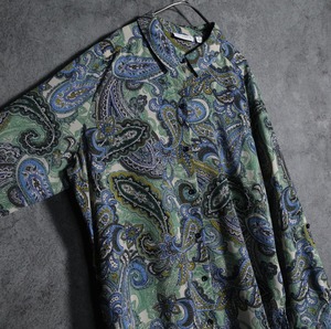 ベースにライトグリーンのペイズリーがあり、その上から色の濃いグリーンやライトブルーをあしらっているのが立体感があり洒落ています。