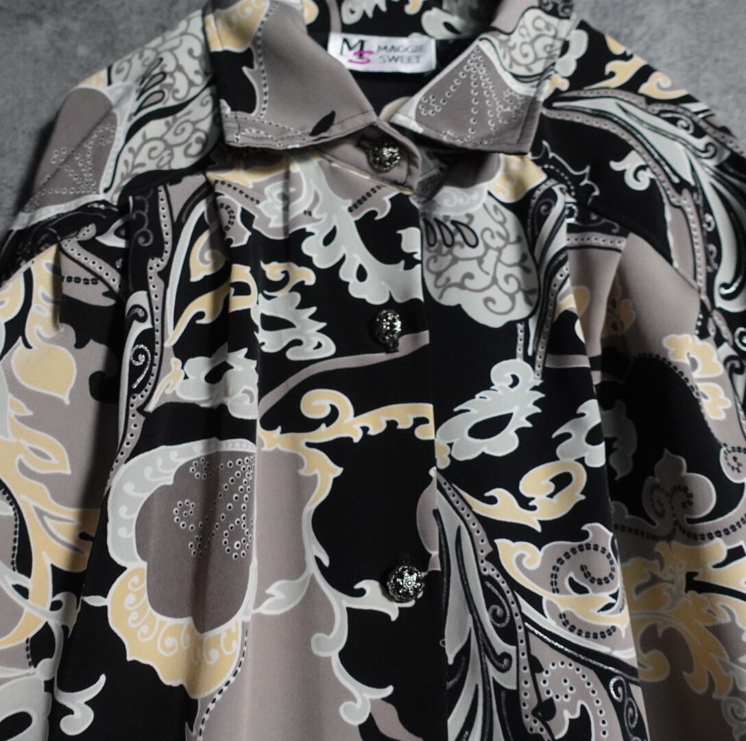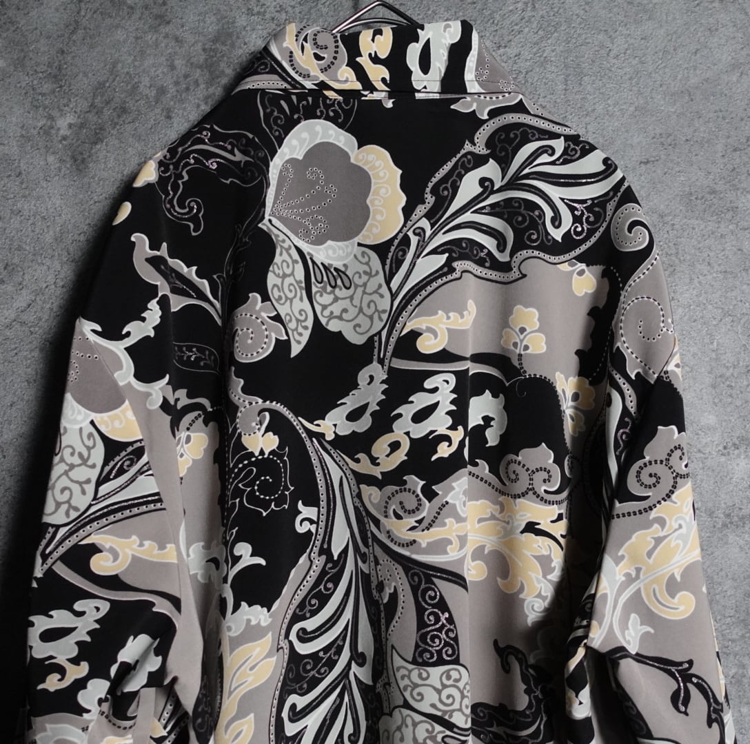 ボタニカルモチーフの柄を全面にあしらい、ブラックの柄部分には光沢感のあるラメが入っており珍しいアクセントになっています。