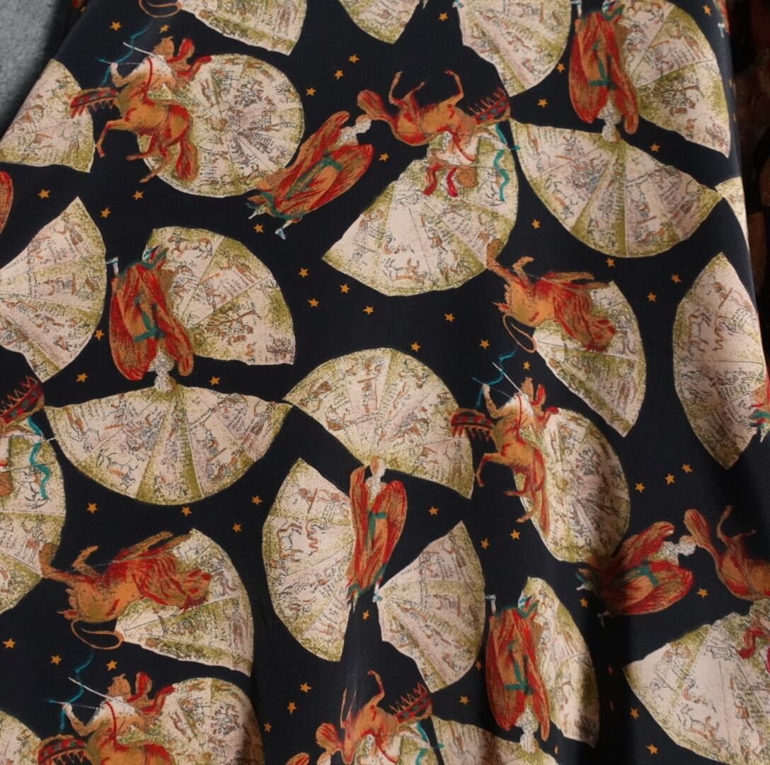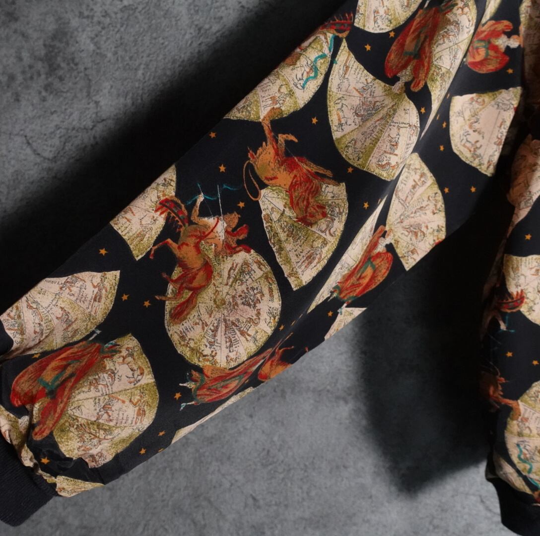 ケンタウルス、ライオン、天使、星のプリントを全面にあしらった、珍しいデザインです。