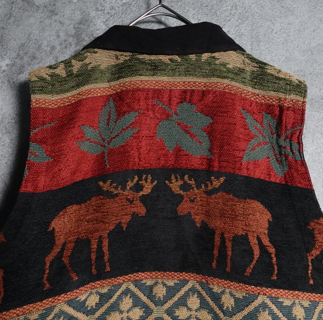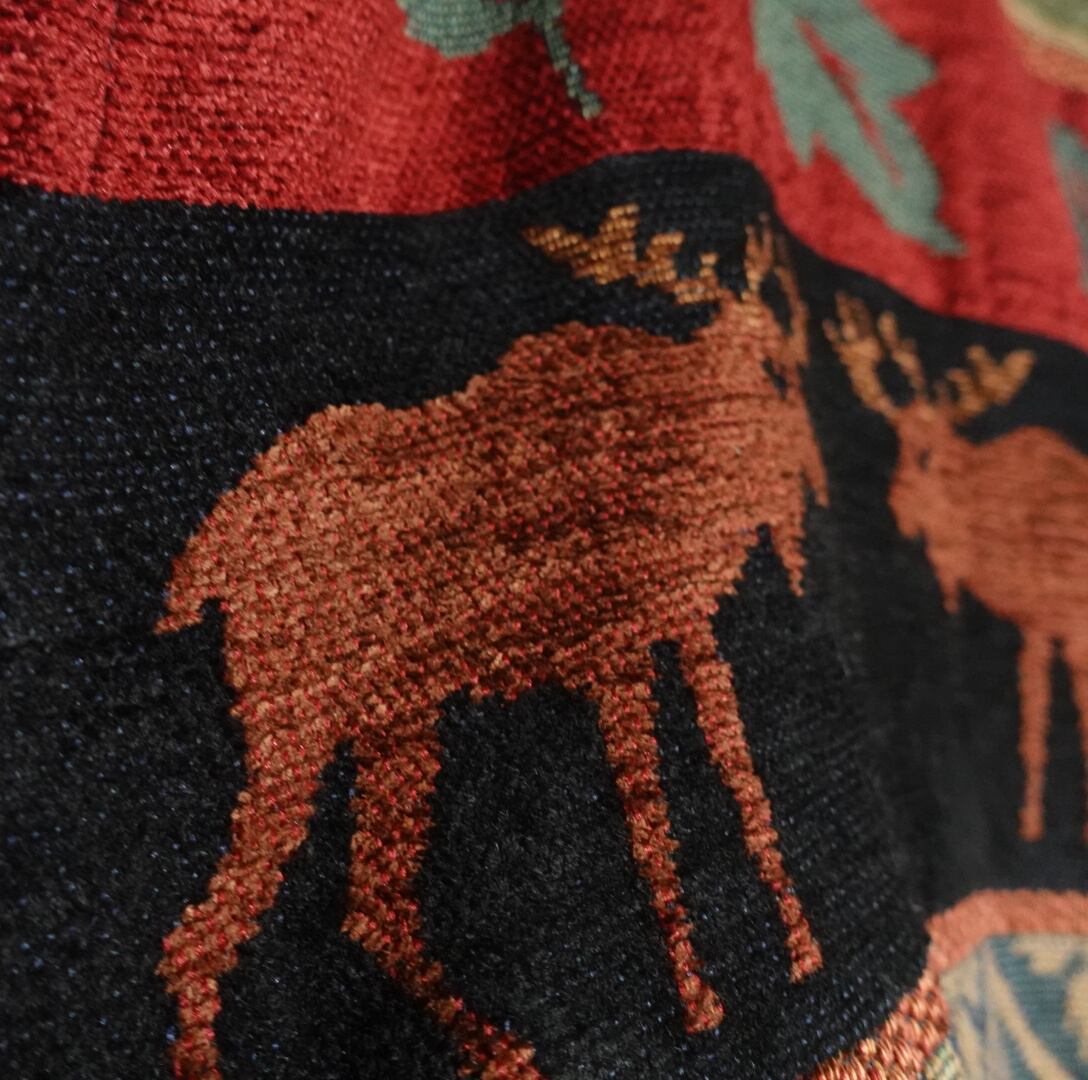 ヘラジカ、葉、魚などのモチーフをボーダー状に広げたアメリカンなデザイン。