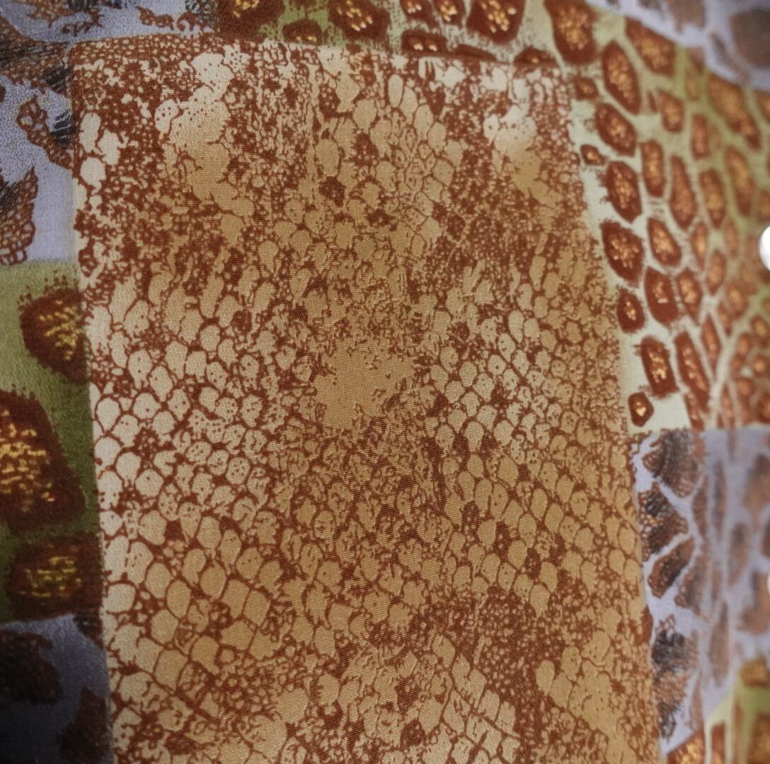 スネーク柄や抽象的な柄をバラバラに組み合わせたような凝った独特なデザイン。