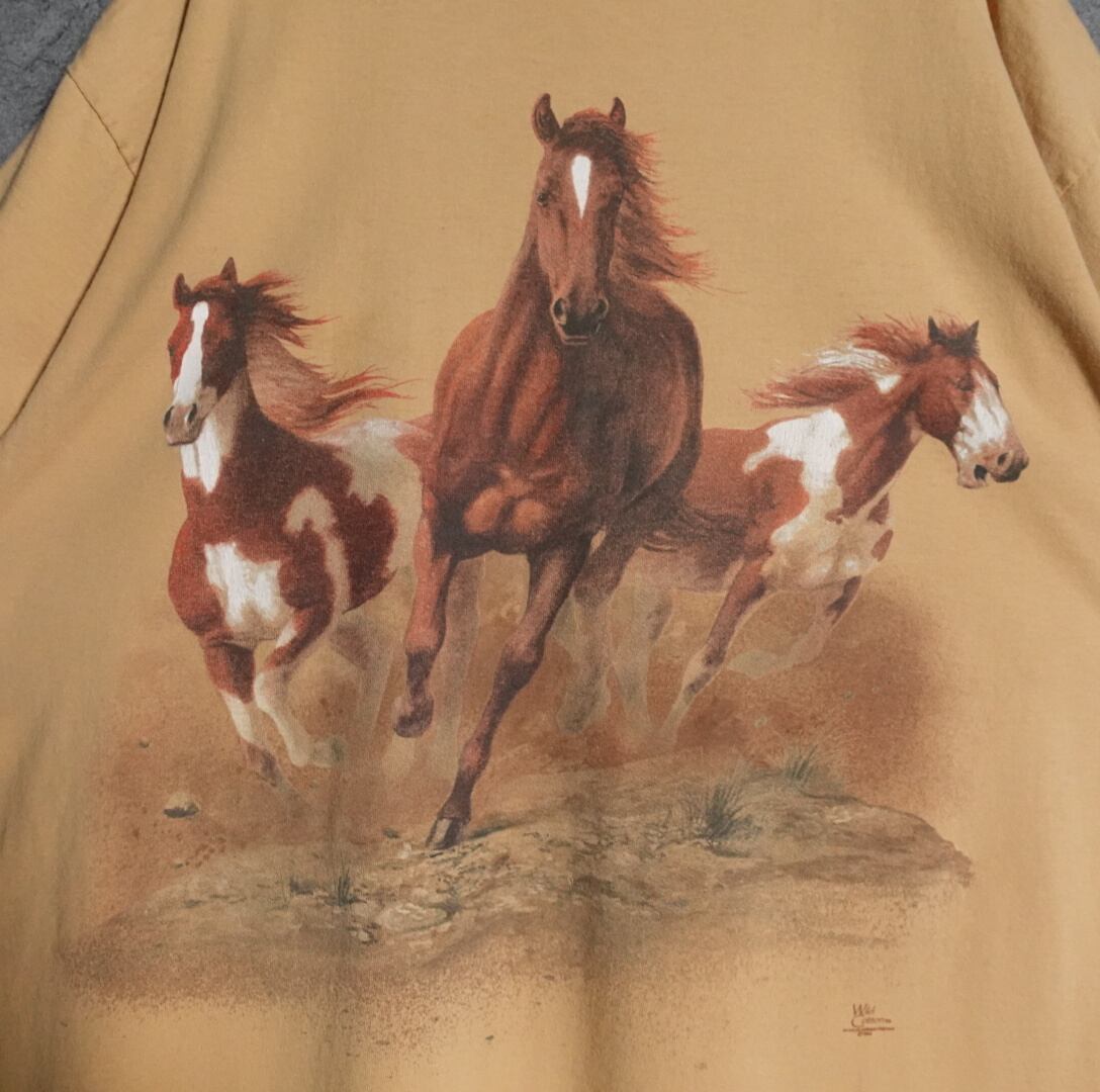 ベージュをベースに疾走感のある3頭の馬を両面にプリントしたデザイン。