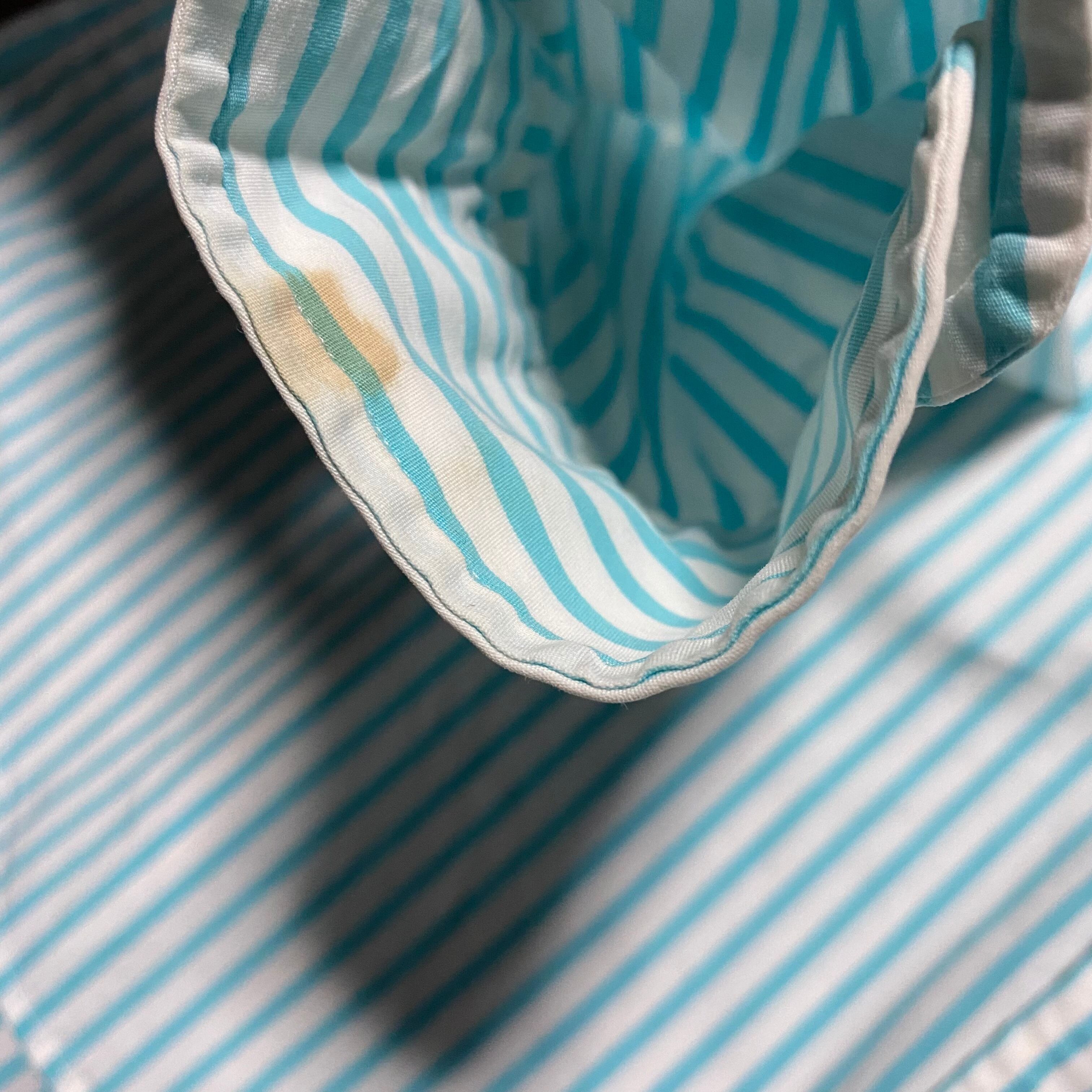 ライトブルー、ホワイトのストライプをベースにイエローのポニーロゴの刺繍を施したデザイン。ブルーはよく見かけますがここまで色のトーン高いライトブルーにイエローのポニーロゴはあまり見かけません。