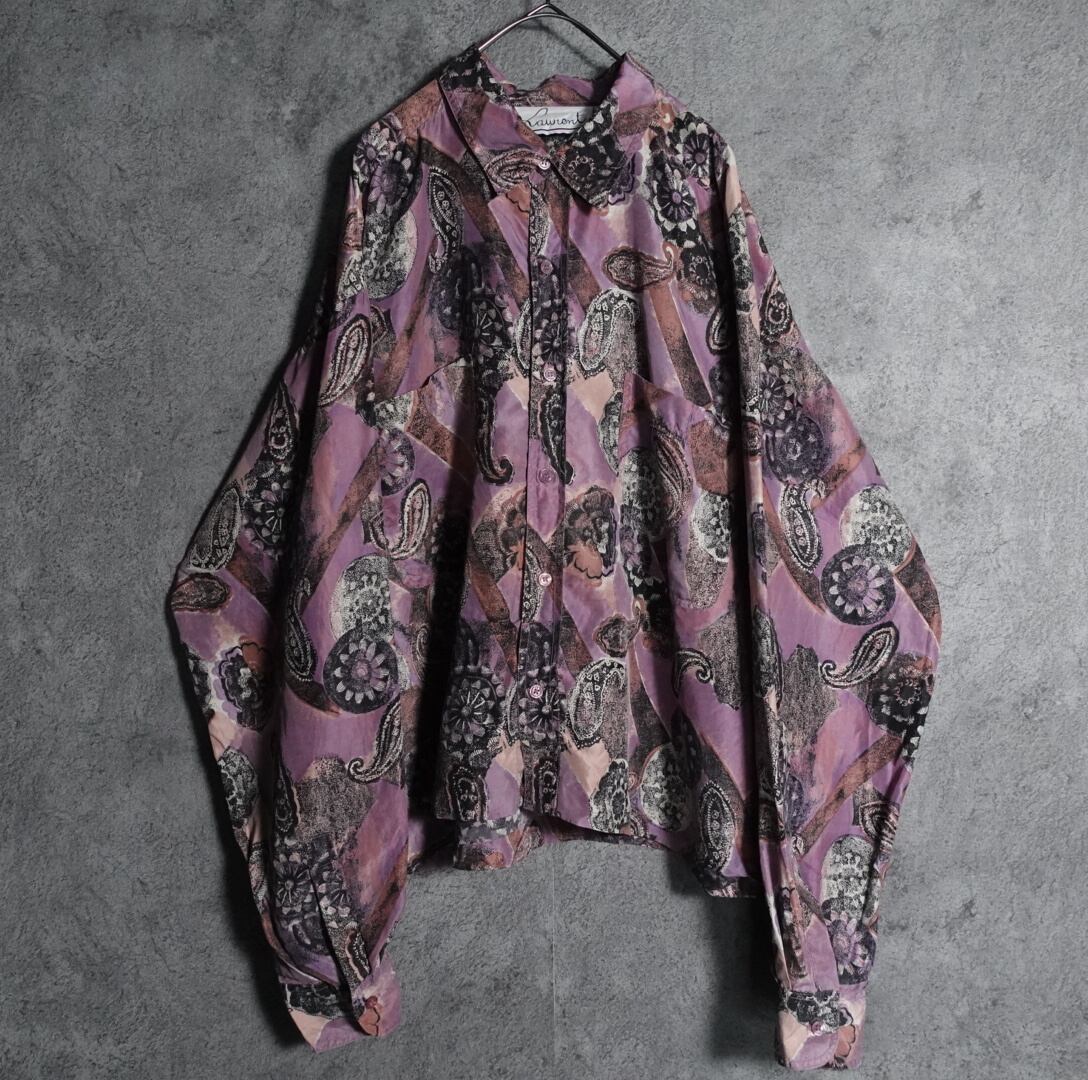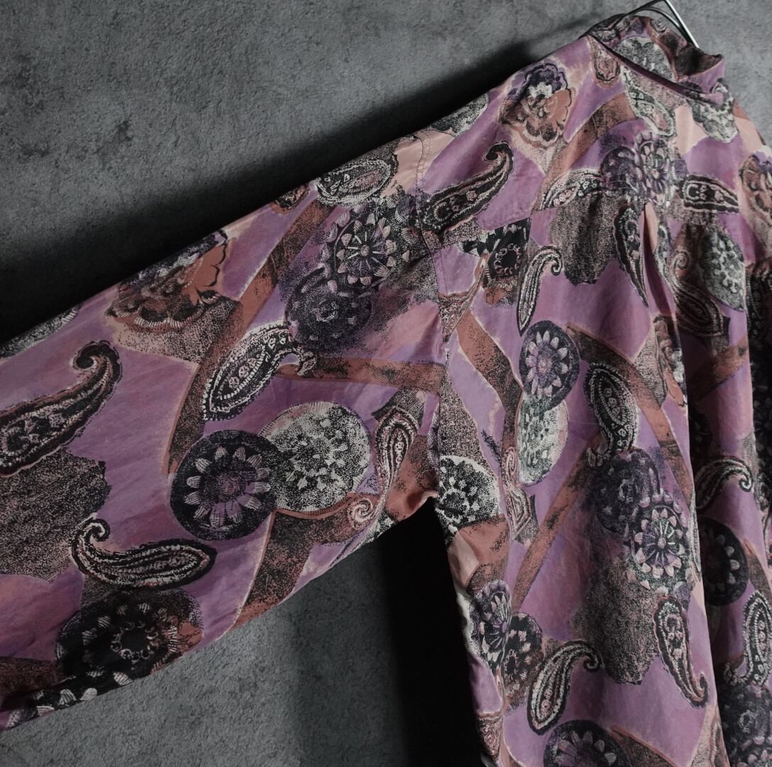 パープルをベースにペイズリー柄と幾何学模様を全面にあしらった独特なデザイン。