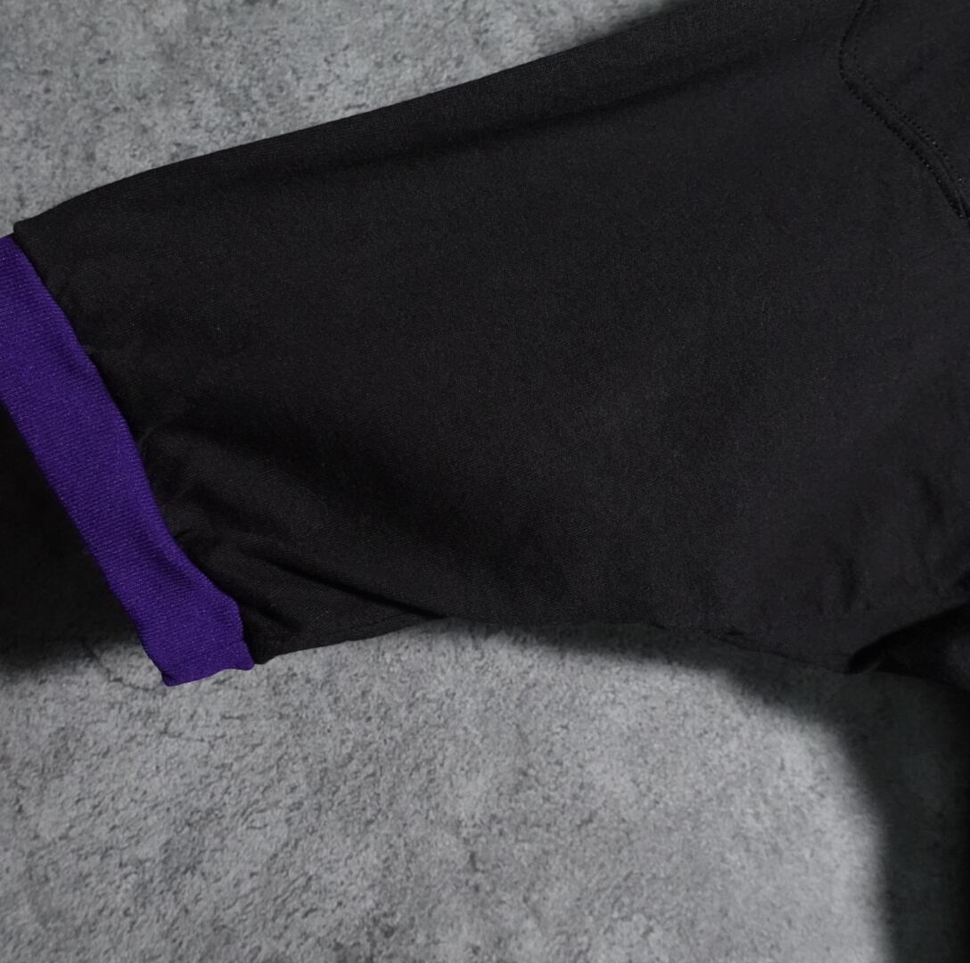 ブラックをベースに、ディープパープルのアルファベット、仮面のプリントをジャケット前面にあしらったデザイン。