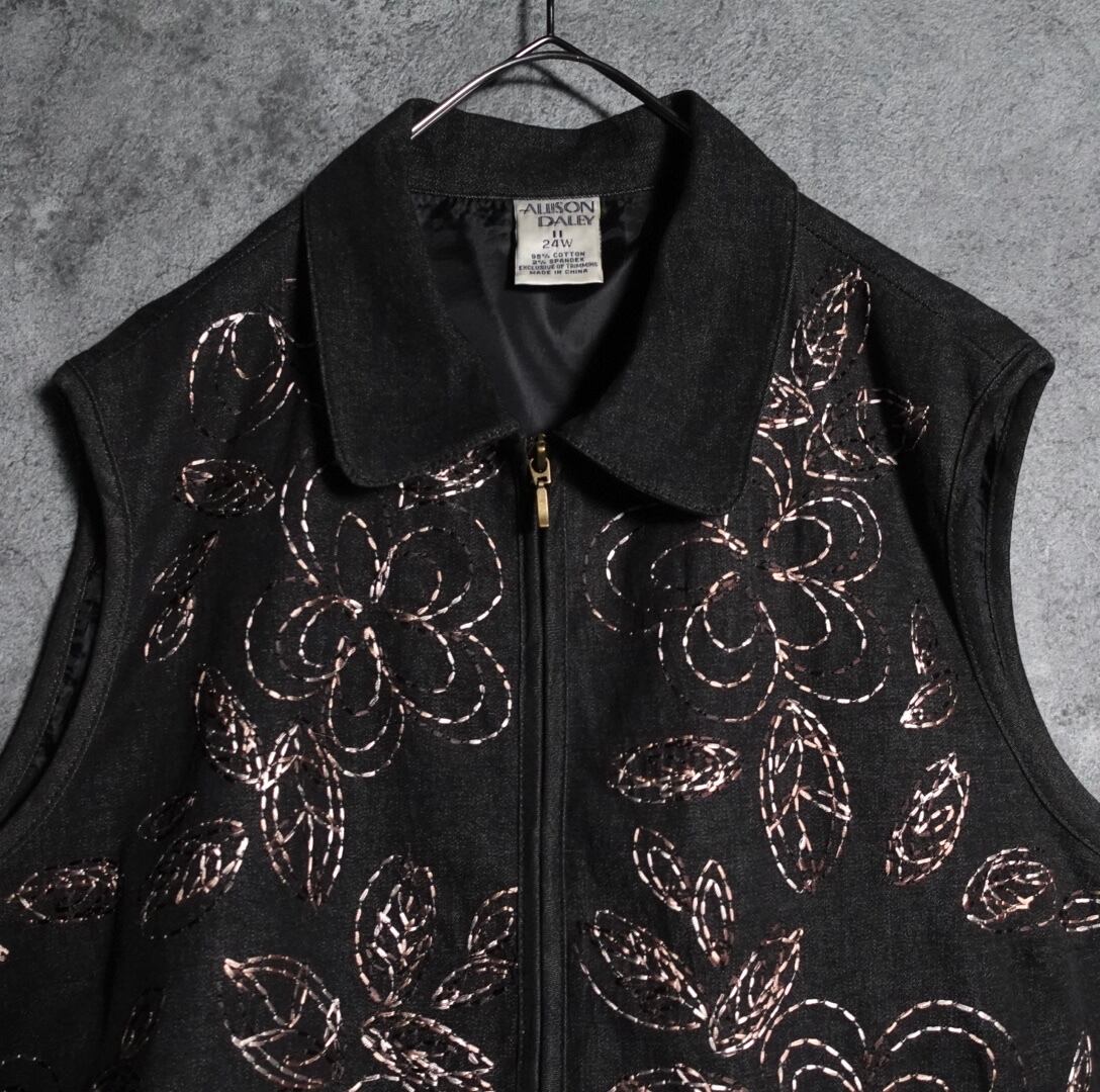 ブラックデニムの刺繍デザインベストが入荷です。