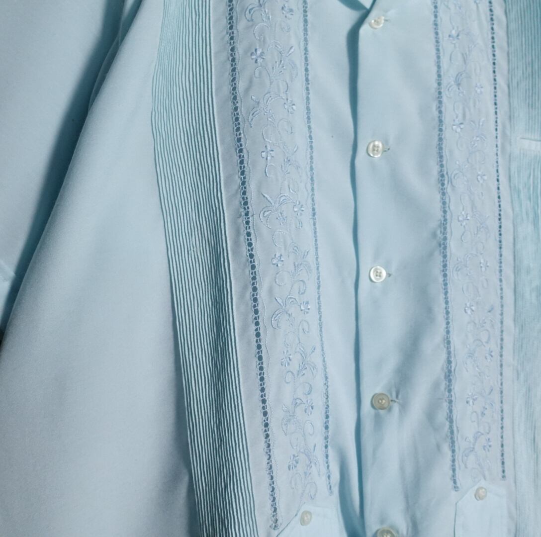 Light blue embroidery Cuban shirt