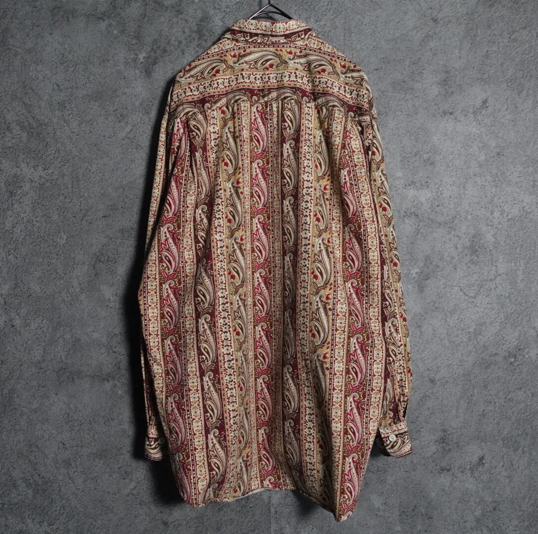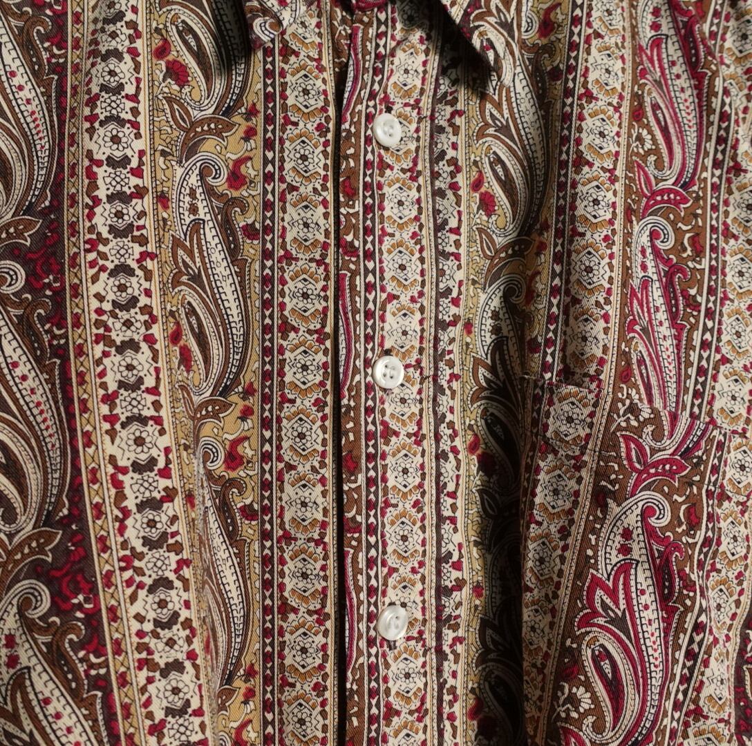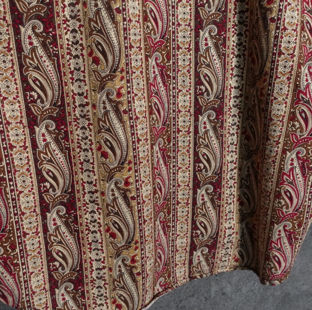 ペイズリー柄と花柄をストライプ状に全面にあしらったデザイン。
